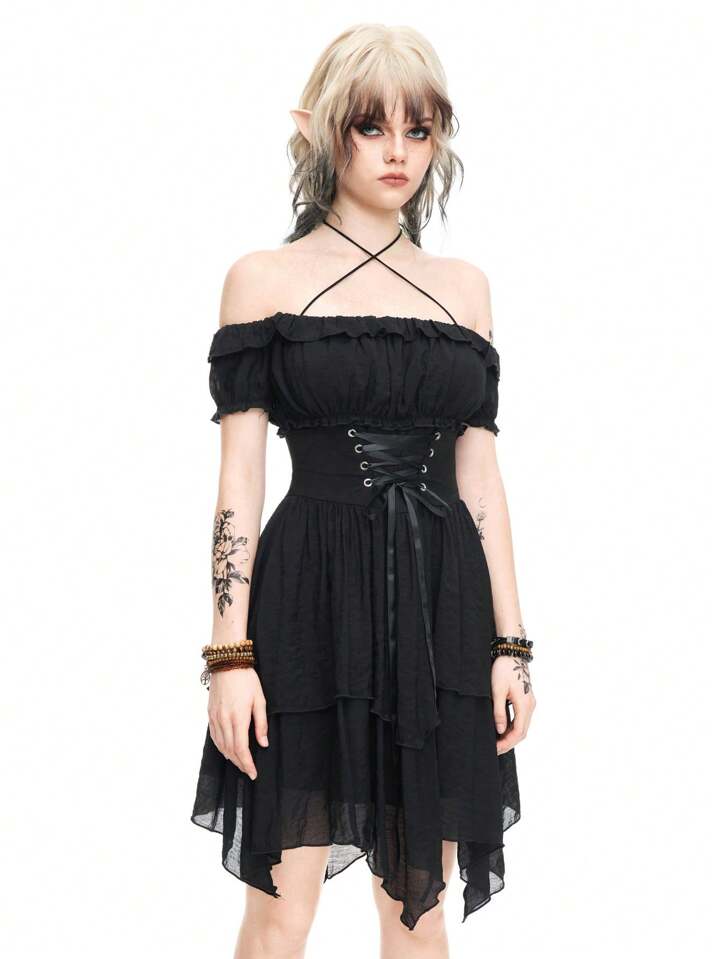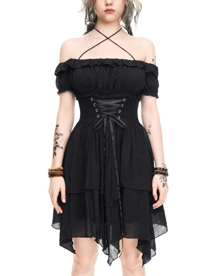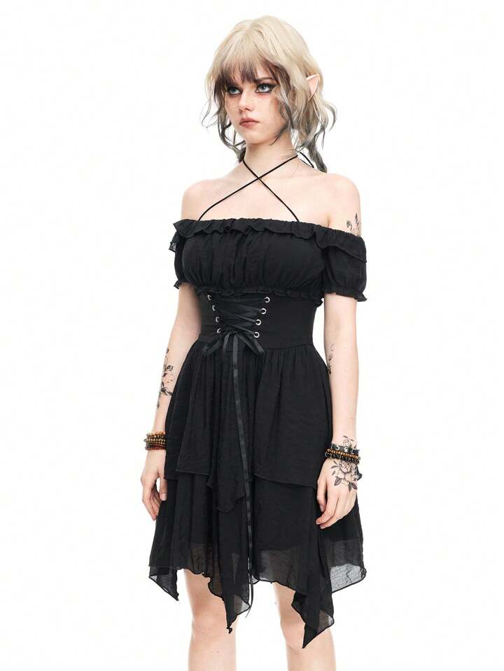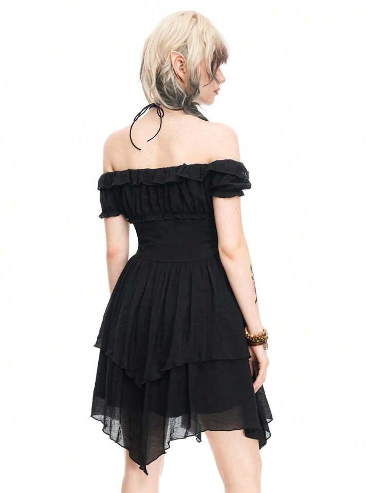 Fairycore Women's Strapless High-Low Double Layered Dress With Pointed Hemline
