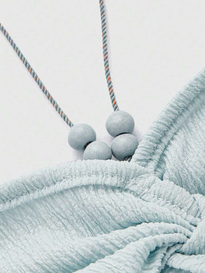 Fairycore Women's Texture Fabric Blouse With Halter Neck, Twist Front Detail, Split Hem And Bell Sleeves