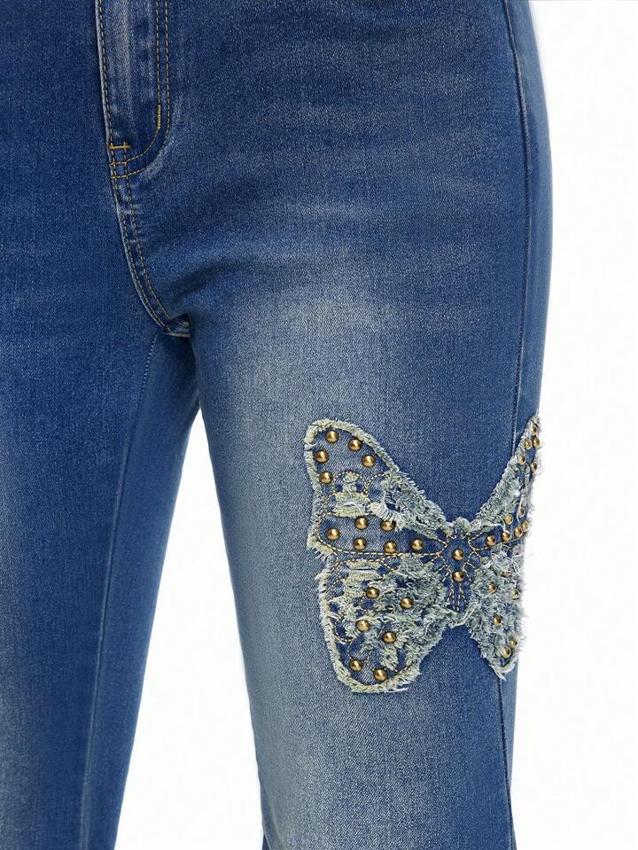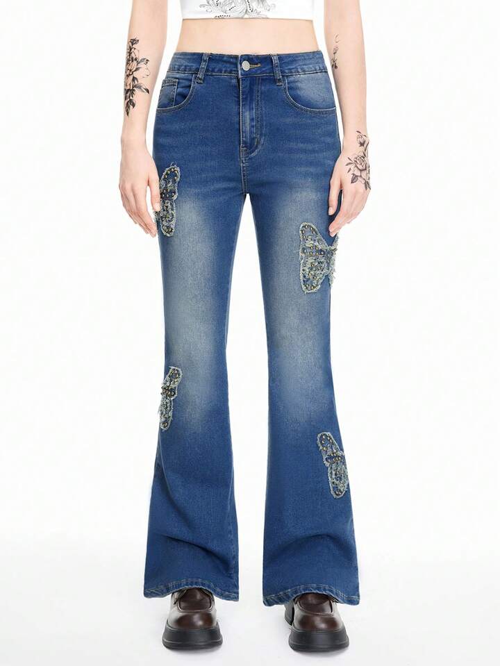 Fairycore Women's Vintage Butterfly Stud Beaded Bohemian Flared Jeans