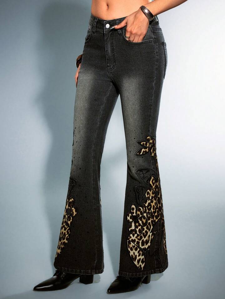 Fairycore Women's Y2K Retro Subculture Leopard Print Embroidery Patchwork Beaded Flare Pants