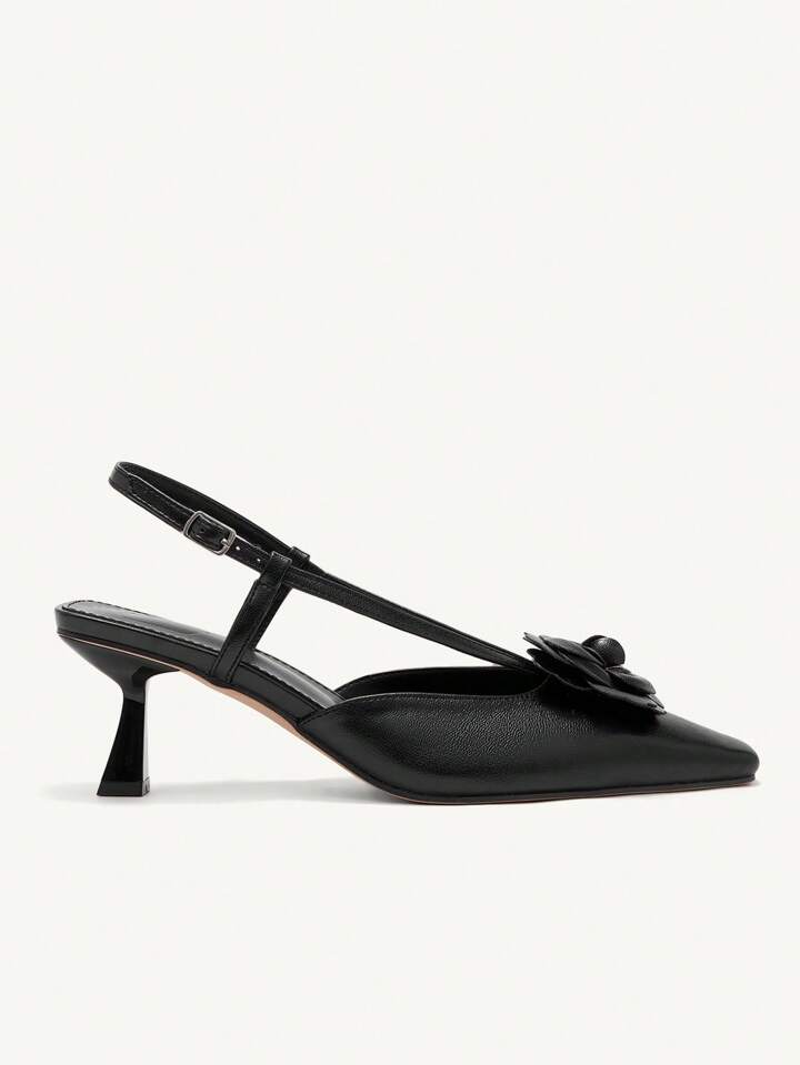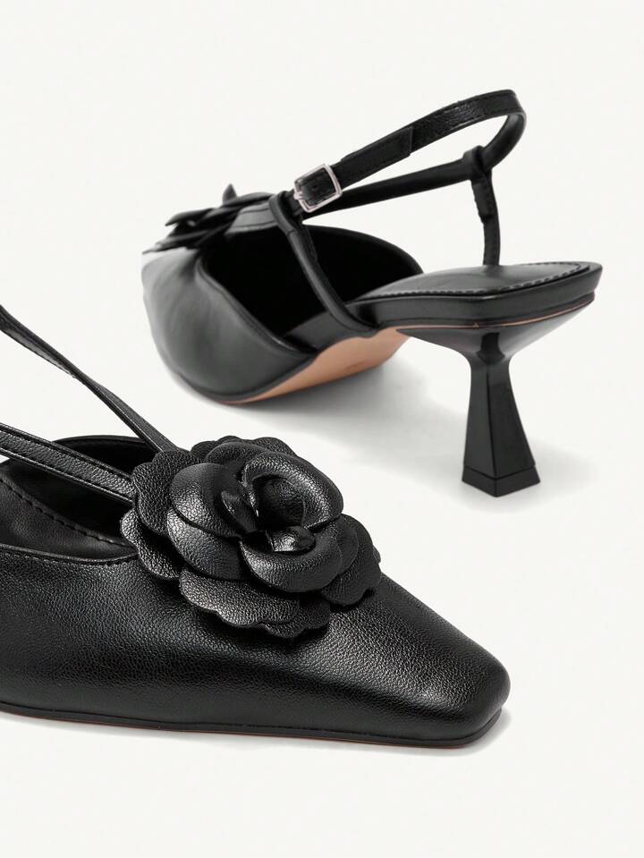 Fashionable Black Floral Decor Square Toe High Heel Casual Slip-On High Heels For Women Valentine's Day