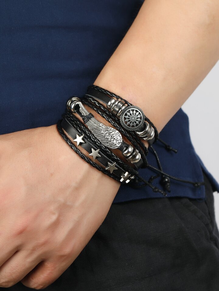Fashionable and Popular 5pcs Men Star Decor Bracelet PU for Jewelry Gift and for a Stylish Look