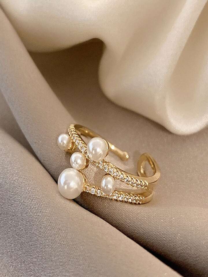 Faux Pearl Decor Cuff Ring
