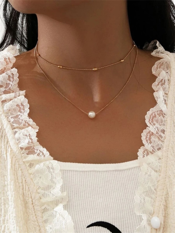 Faux Pearl Decor Layered Necklace