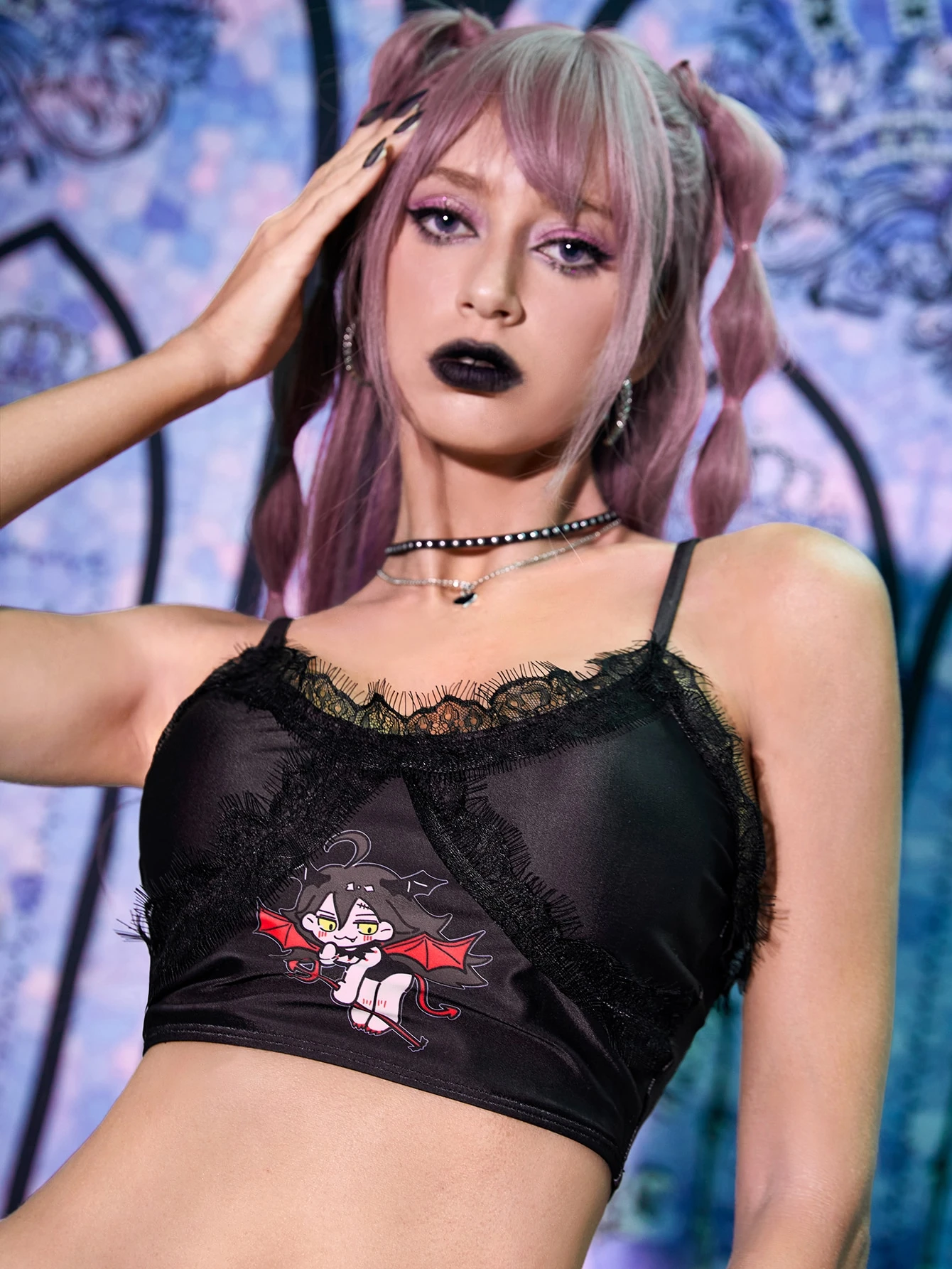 Figure Graphic Lace Trim Bikini Top