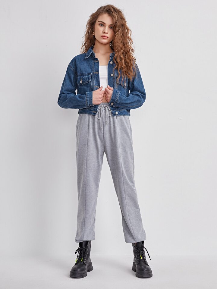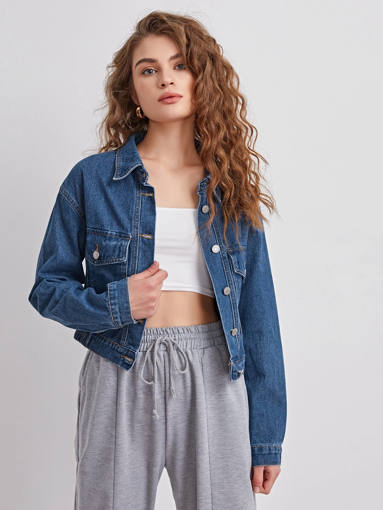 Flap Pocket Front Drop Shoulder Denim Jacket