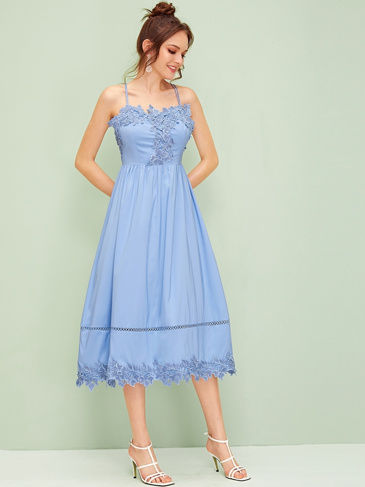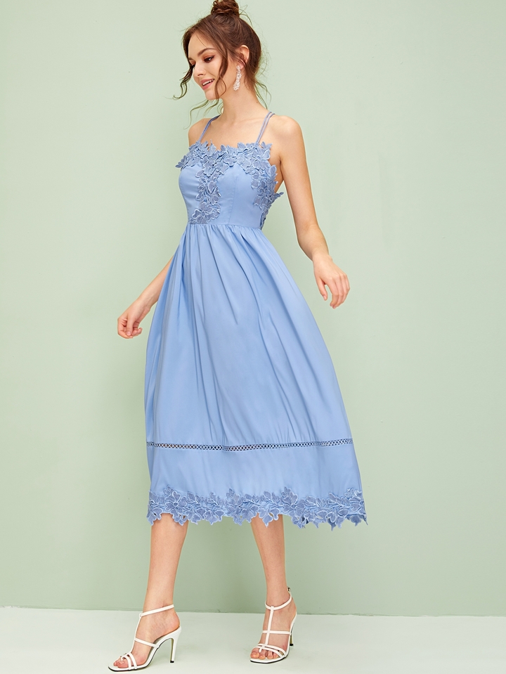Floral Appliques Criss Cross Backless Cami Dress