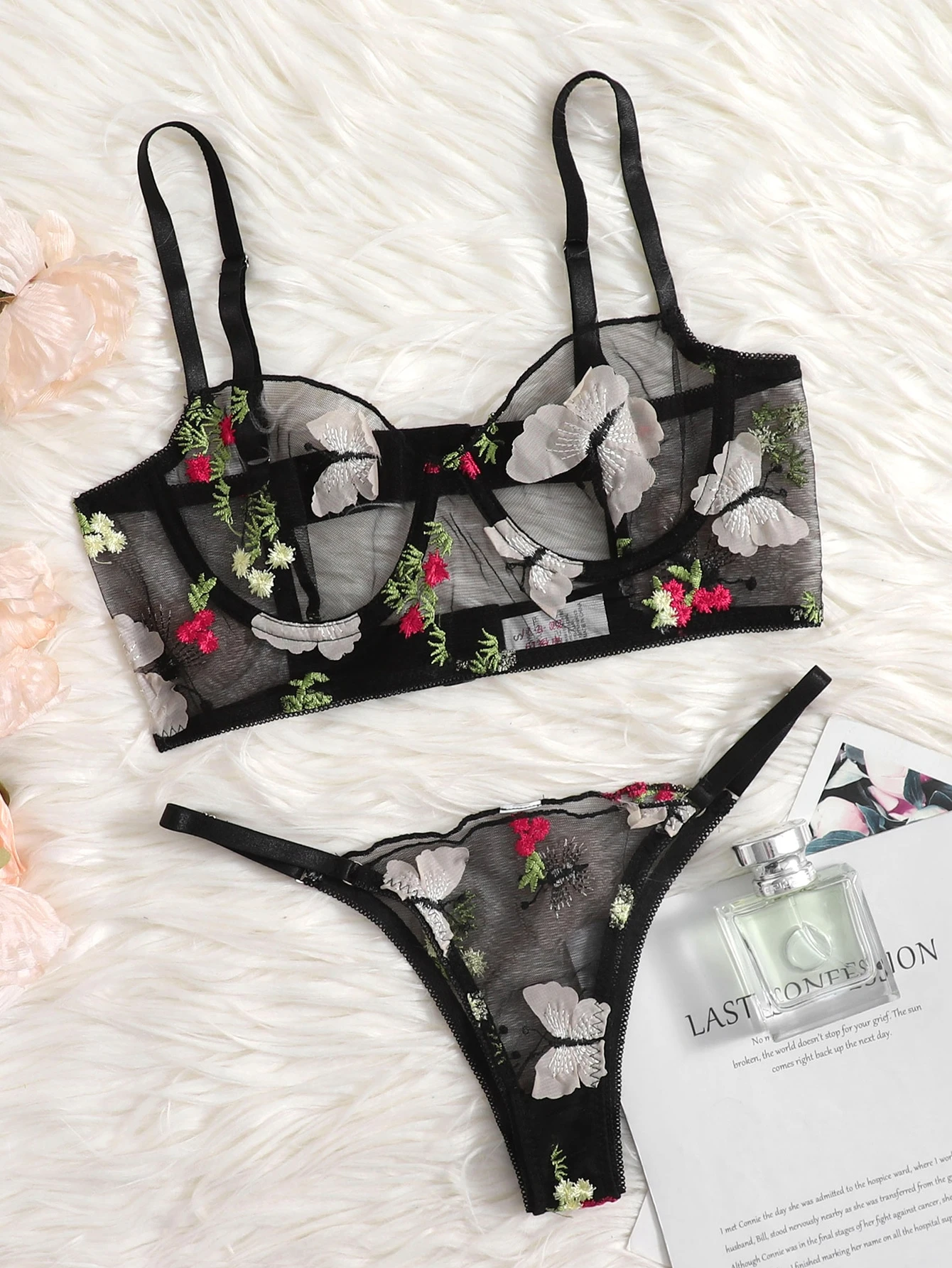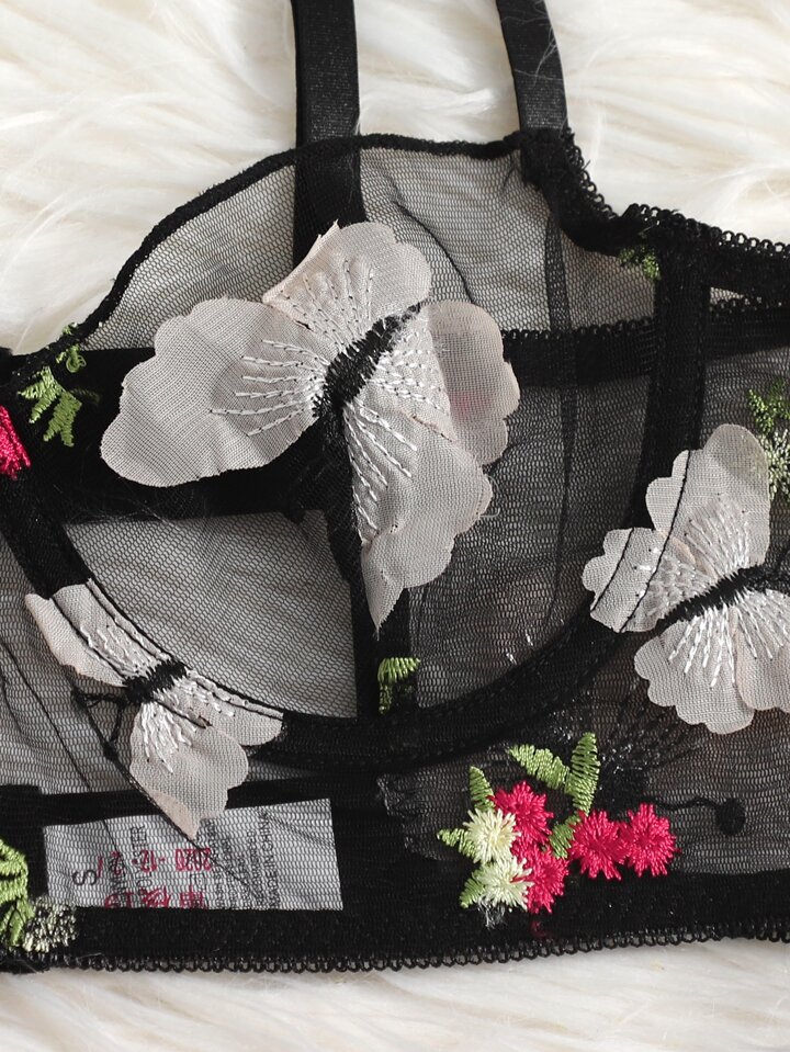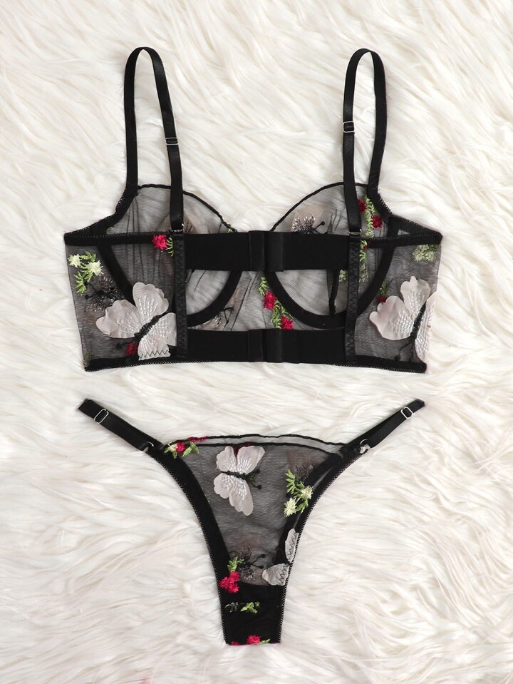 Floral & Butterfly Underwire Mesh Lingerie Set