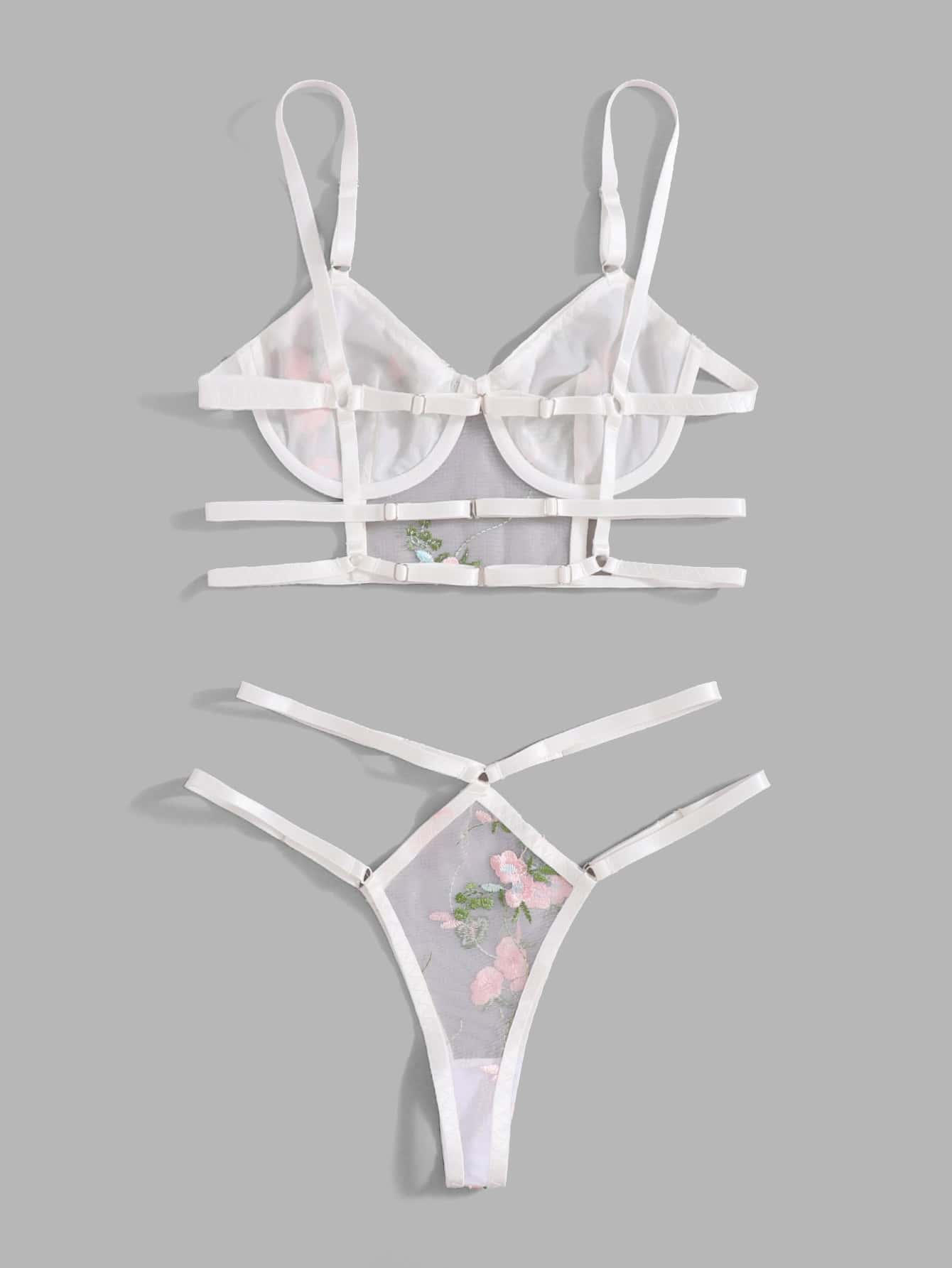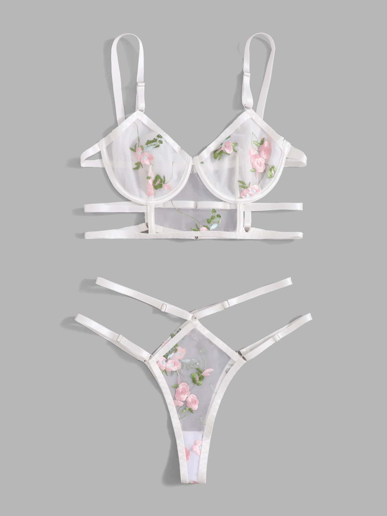 Floral Embroidered Cut-out Underwire Lingerie Set