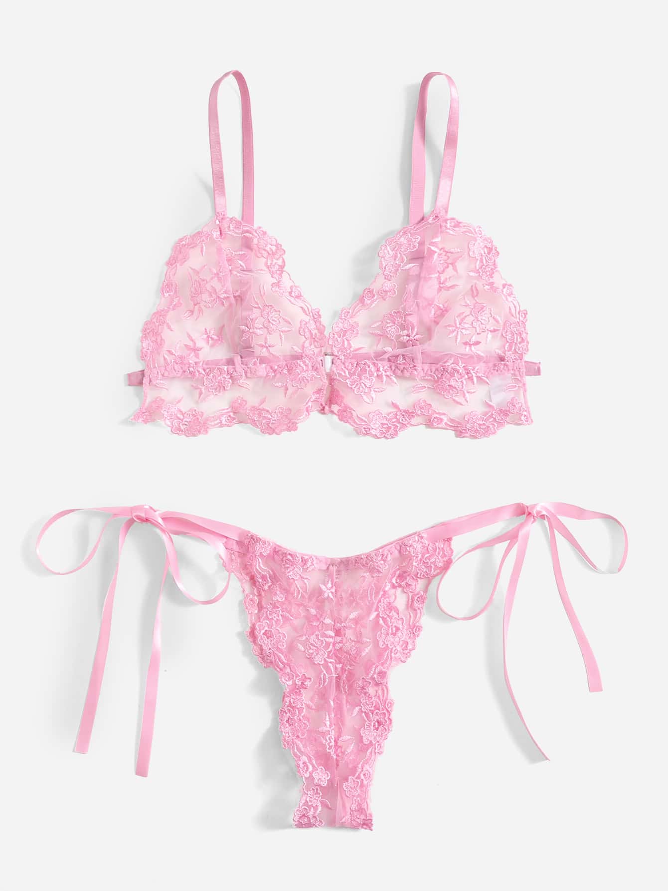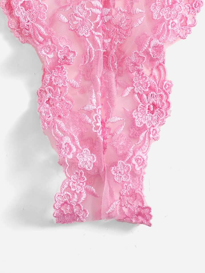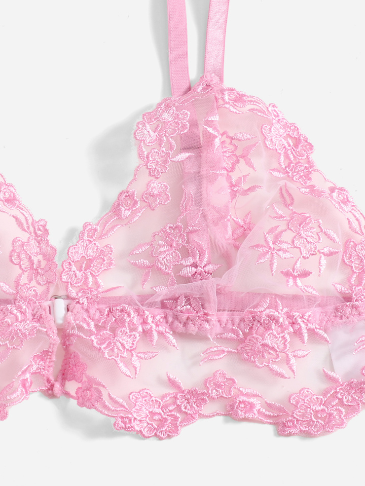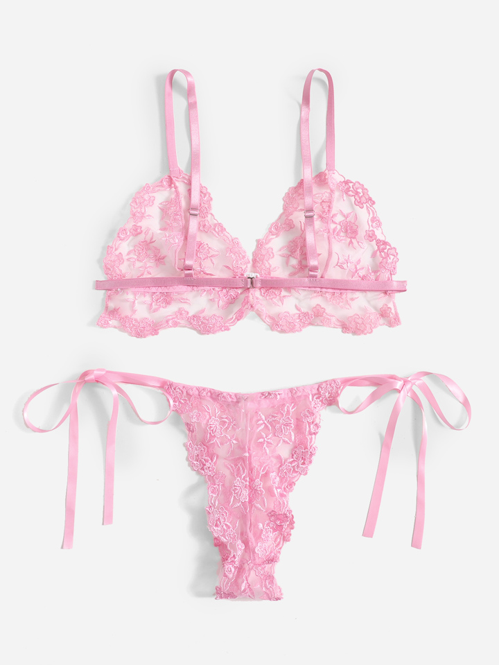 Floral Embroidered Mesh Lingerie Set
