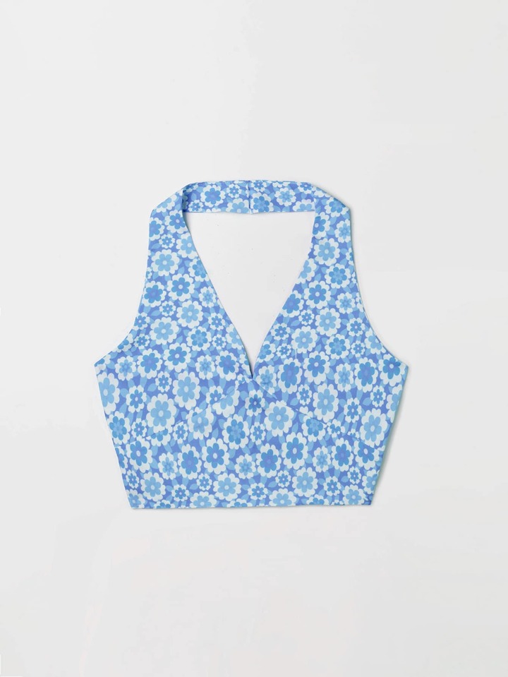Floral Print Bow Back Halter Top