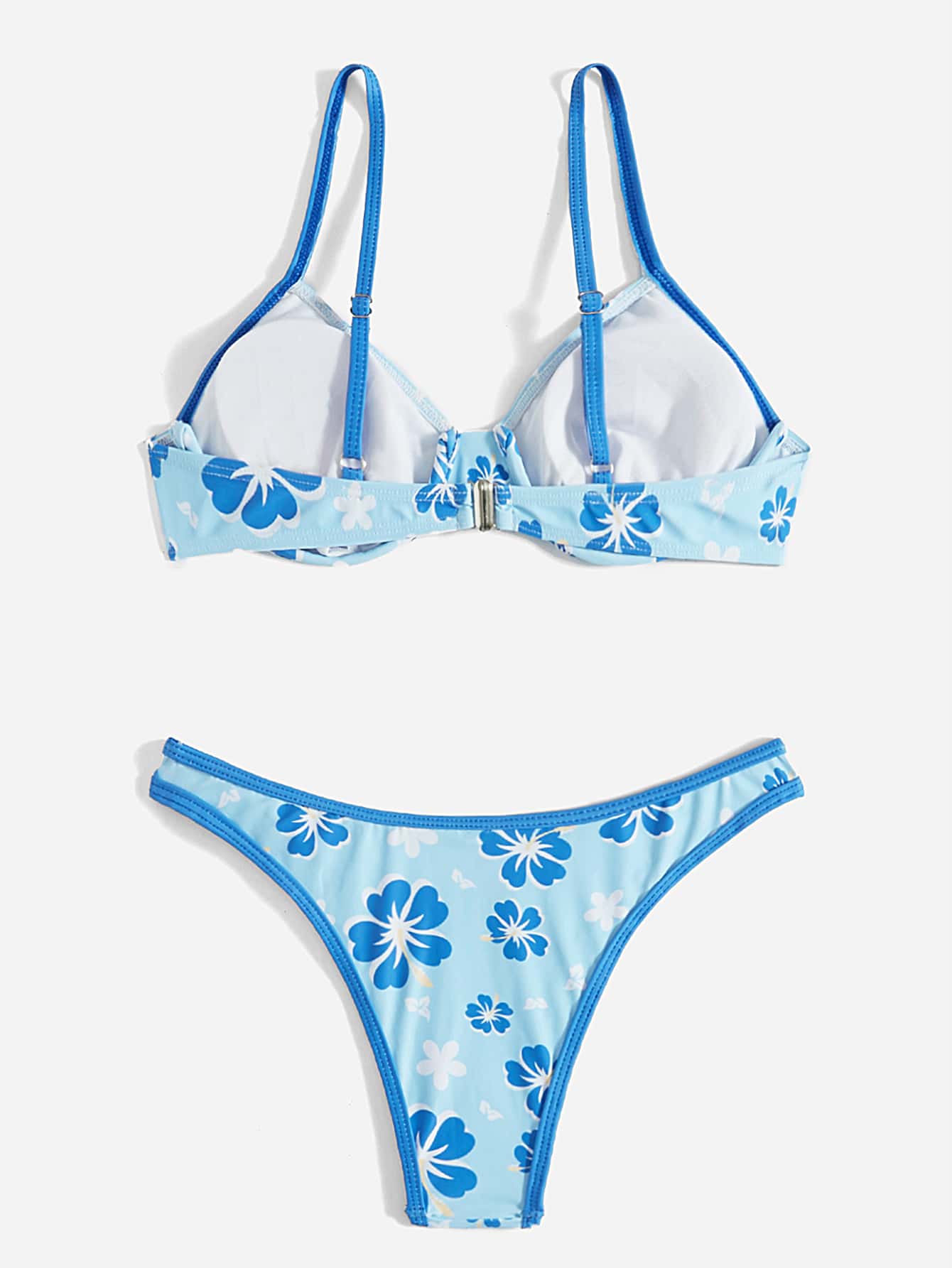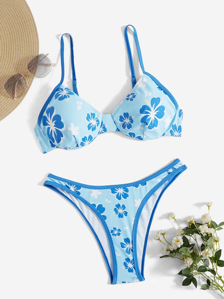 Floral Print Contrast Binding Push Up Bikini