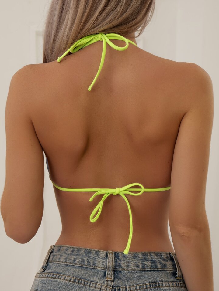 Floral Print Halter Triangle Bikini Top