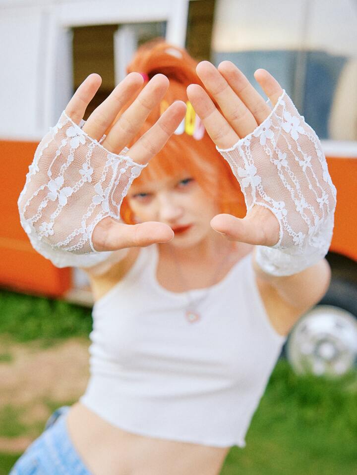 Floral Print Long Fingerless Gloves