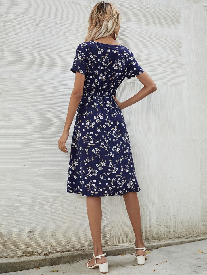 Floral Shirred Waist Dress Maxi Women Outfit
