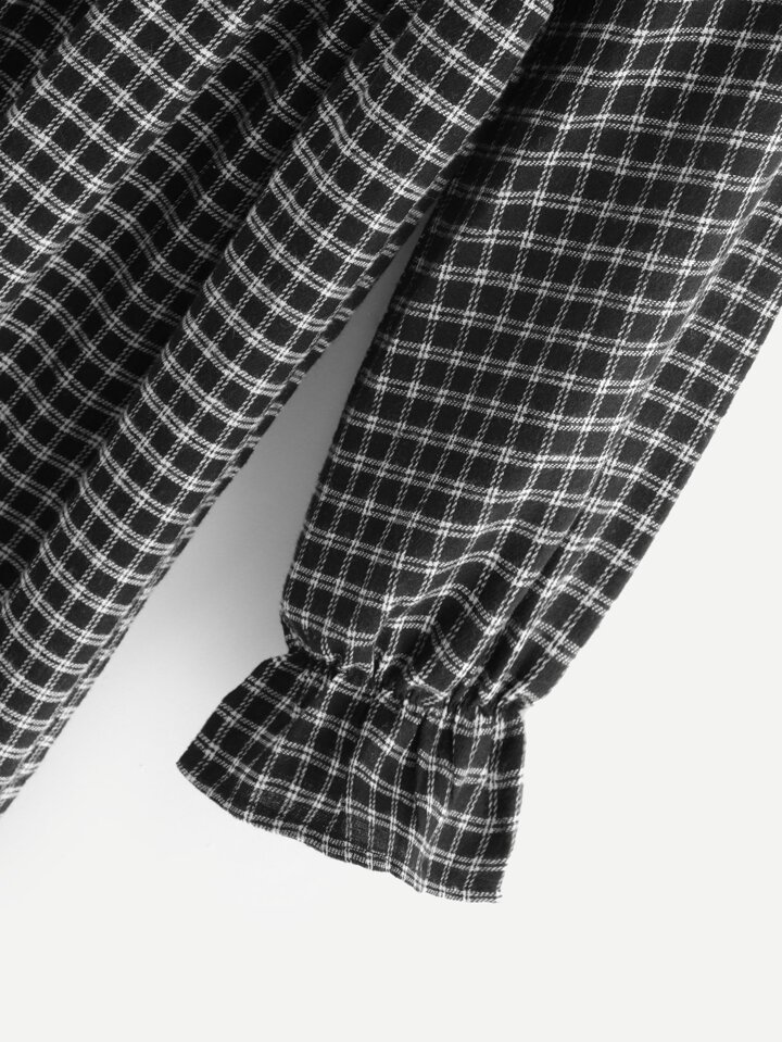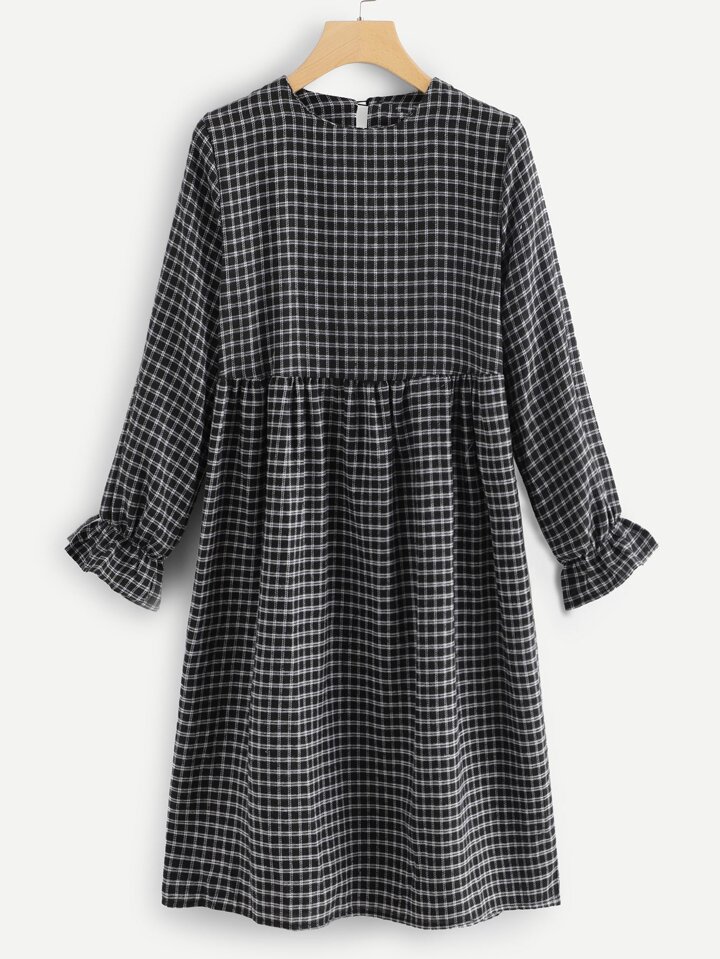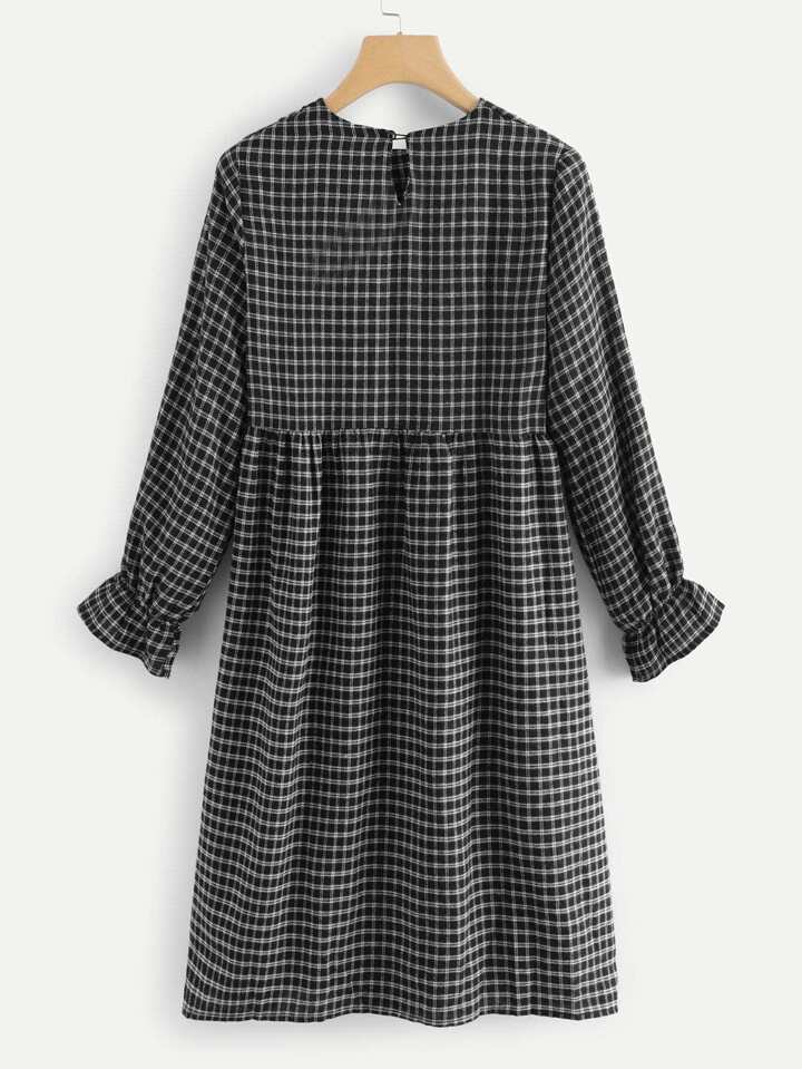 Flounce Sleeve Plaid Dress