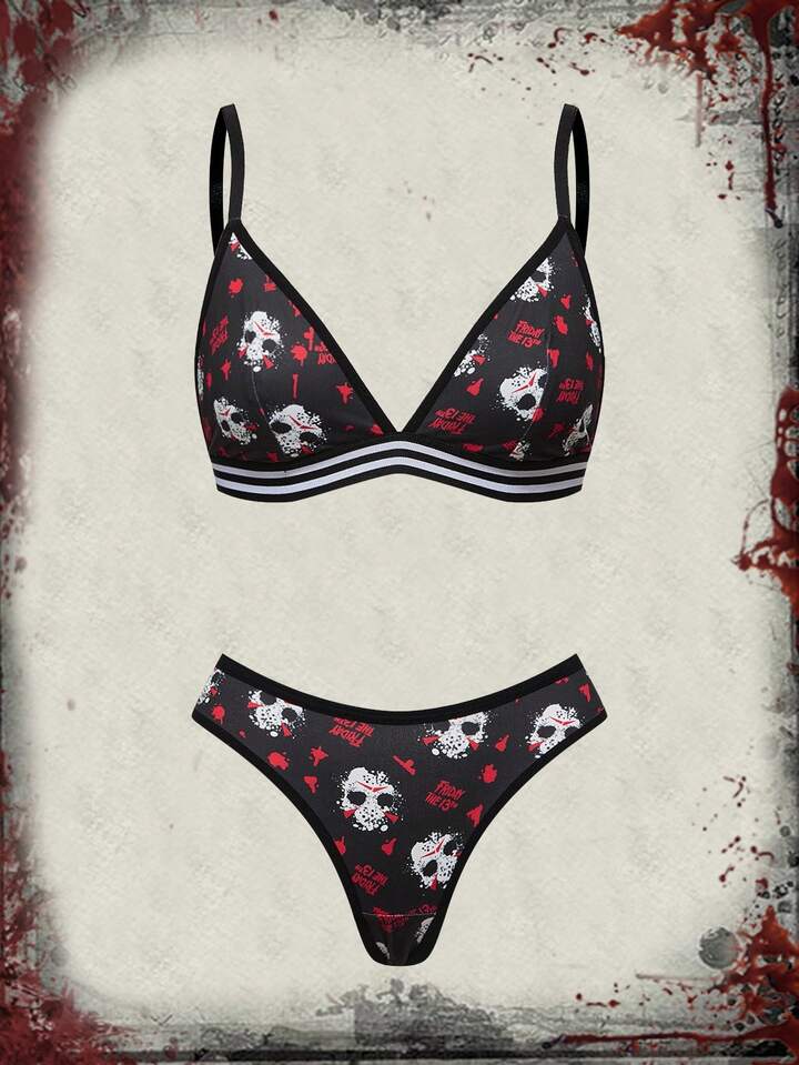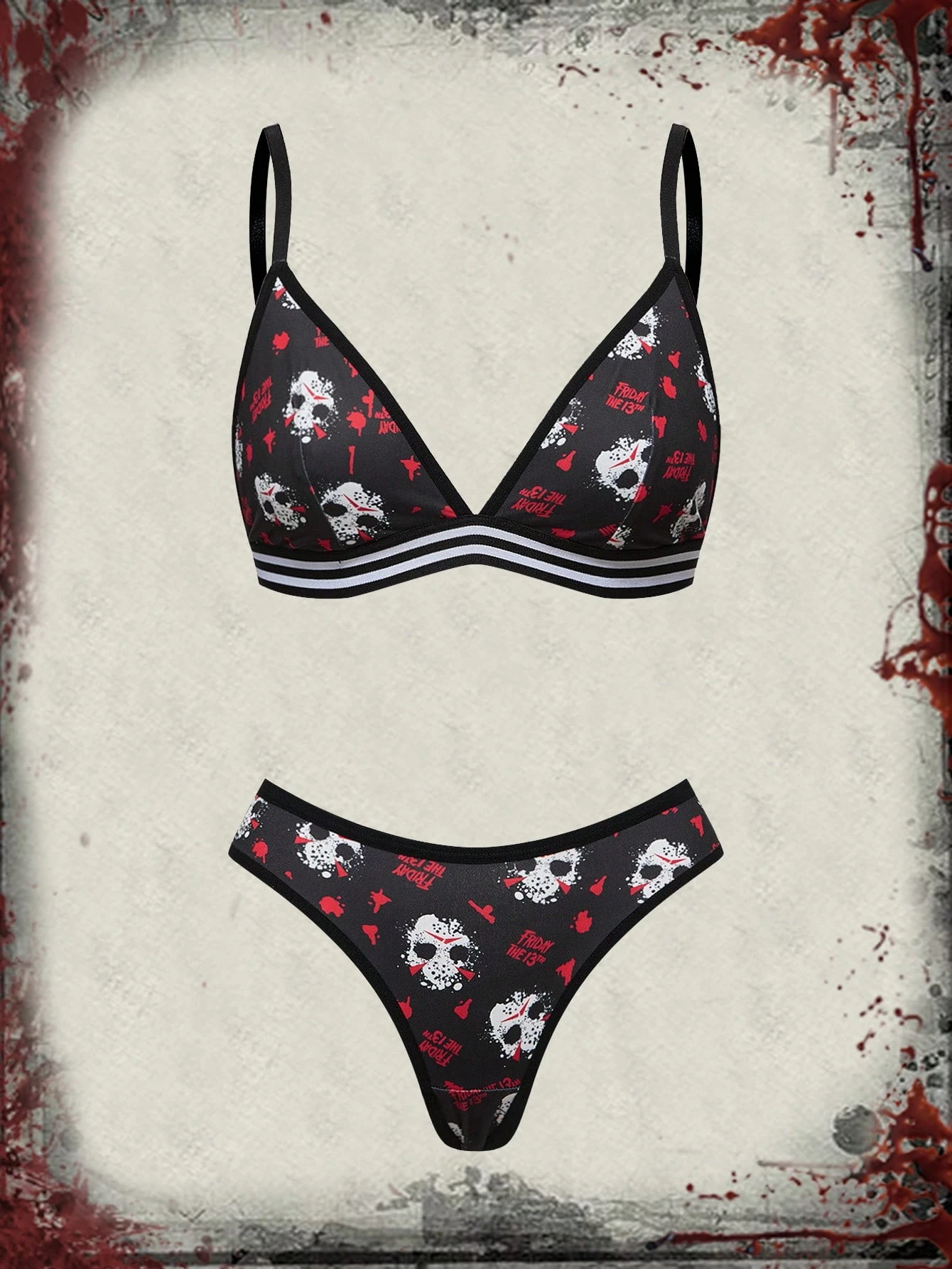 Friday the 13th X ROMWE Collaboration Wireless Triangle Cup Women Lingerie Set