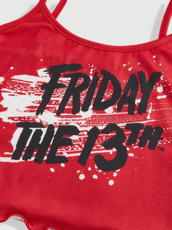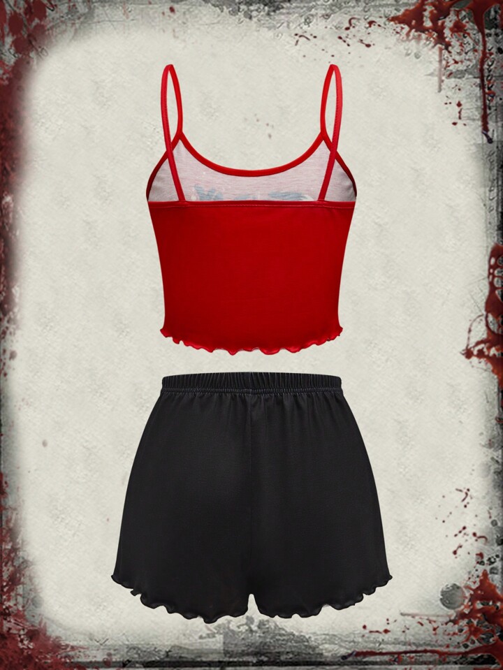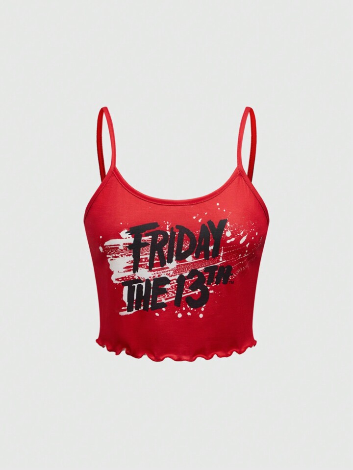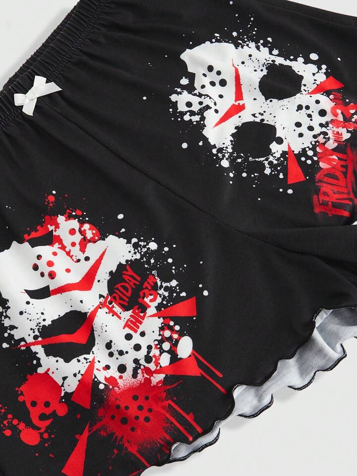 Friday the 13th X ROMWE Women's Casual Summer Letter Graphic Cami Top & Shorts Pajama Set