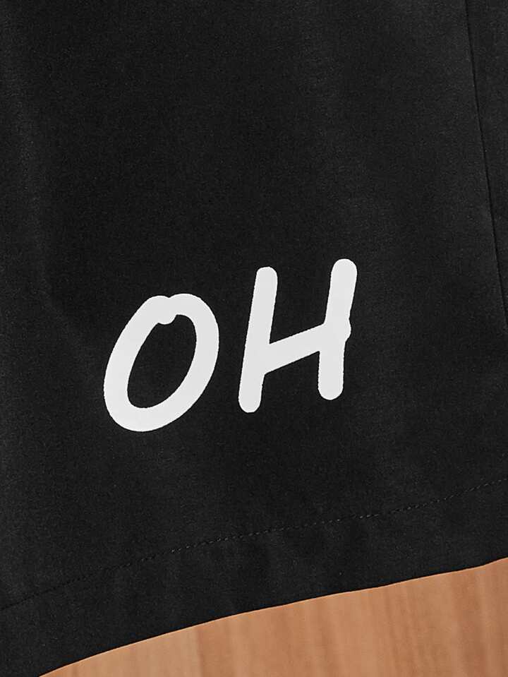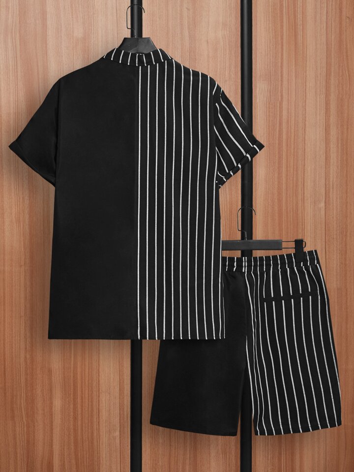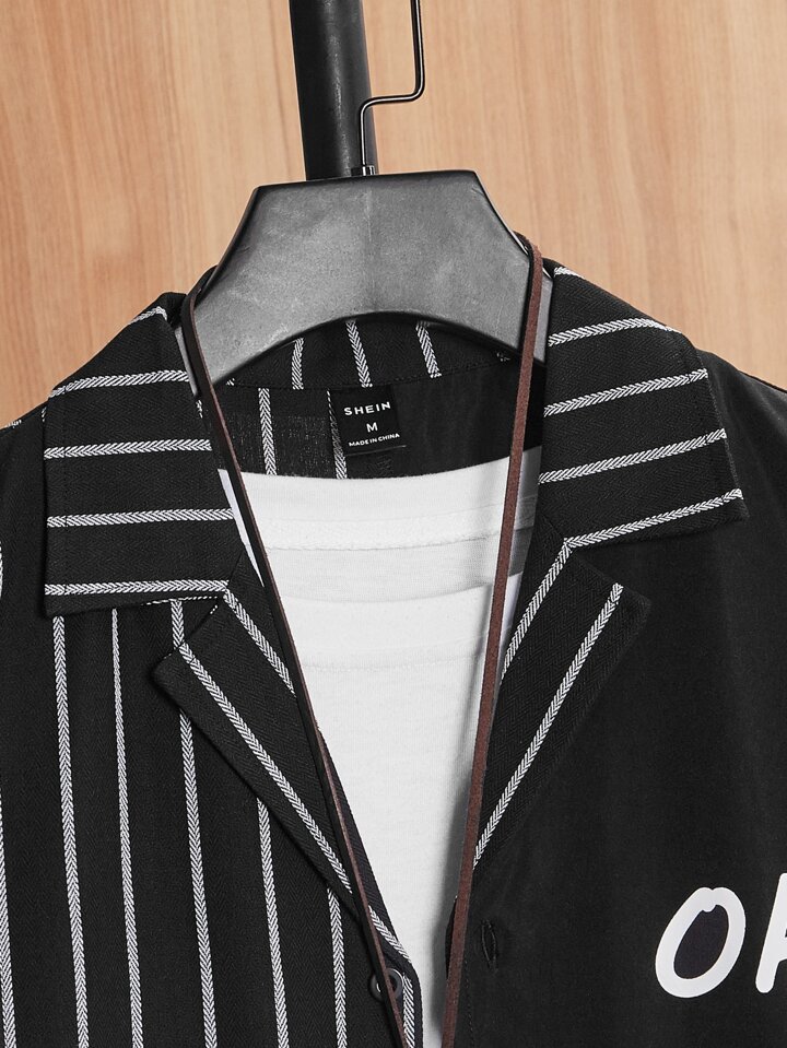 GENTILAND Guys Striped & Letter Graphic Shirt & Drawstring Waist Shorts Without Tee