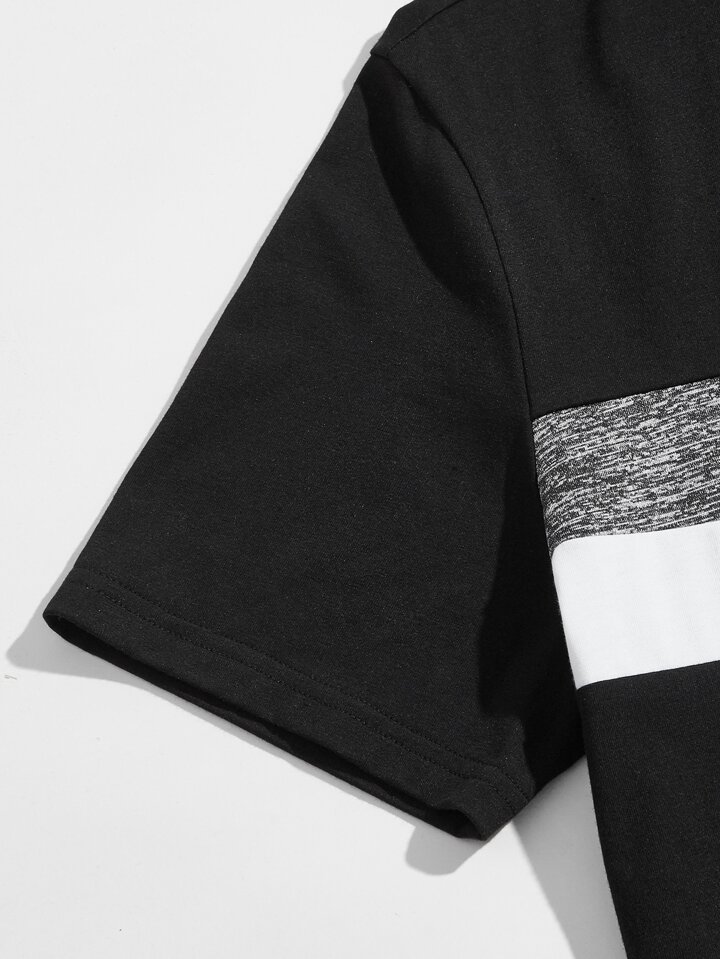 GENTILAND Men Cotton Colorblock Top & Marled Knit Shorts Set