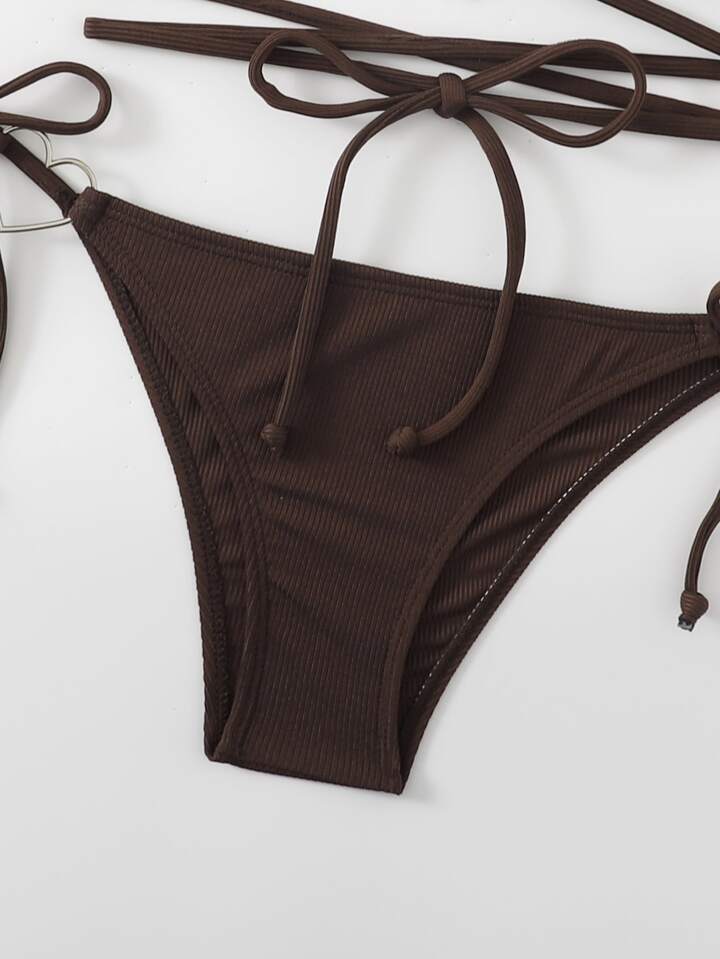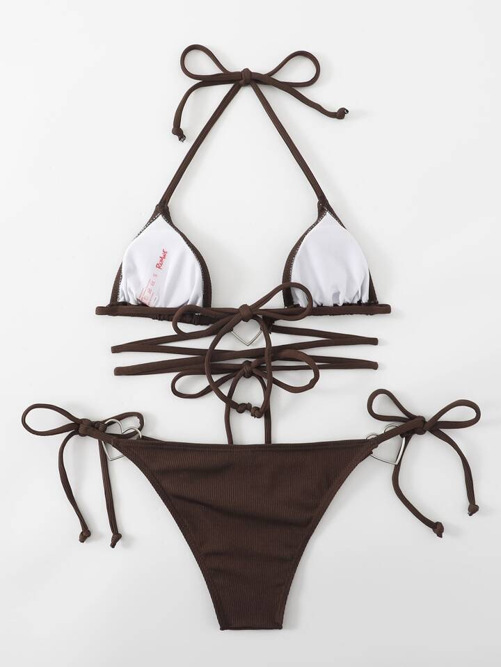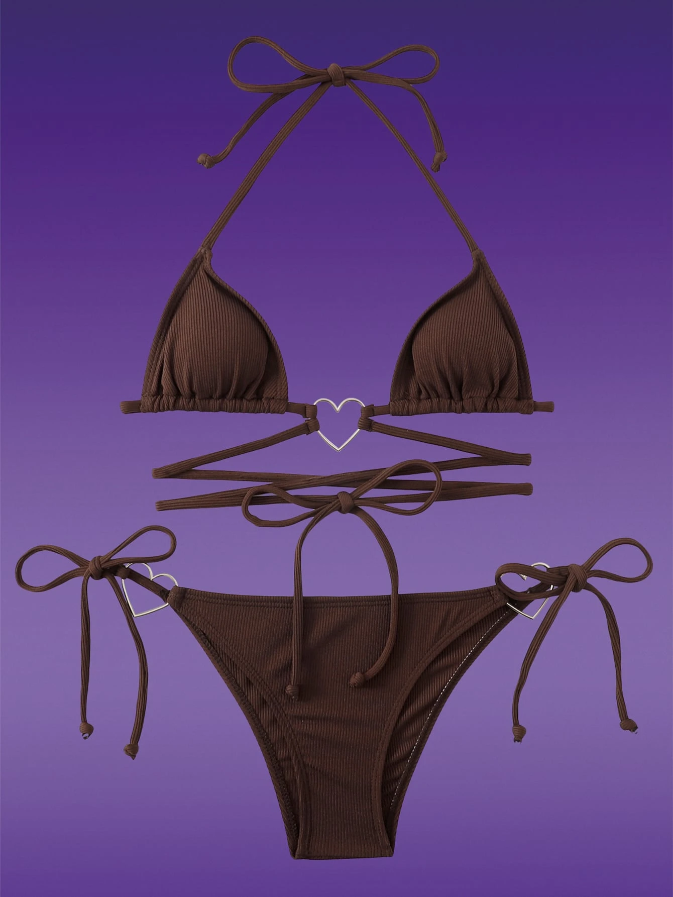 Gemini Bikini Set Heart Ring Linked Triangle Bra & Tie Side Bottom 2 Piece Bathing Suit, For Summer Beach Vacation