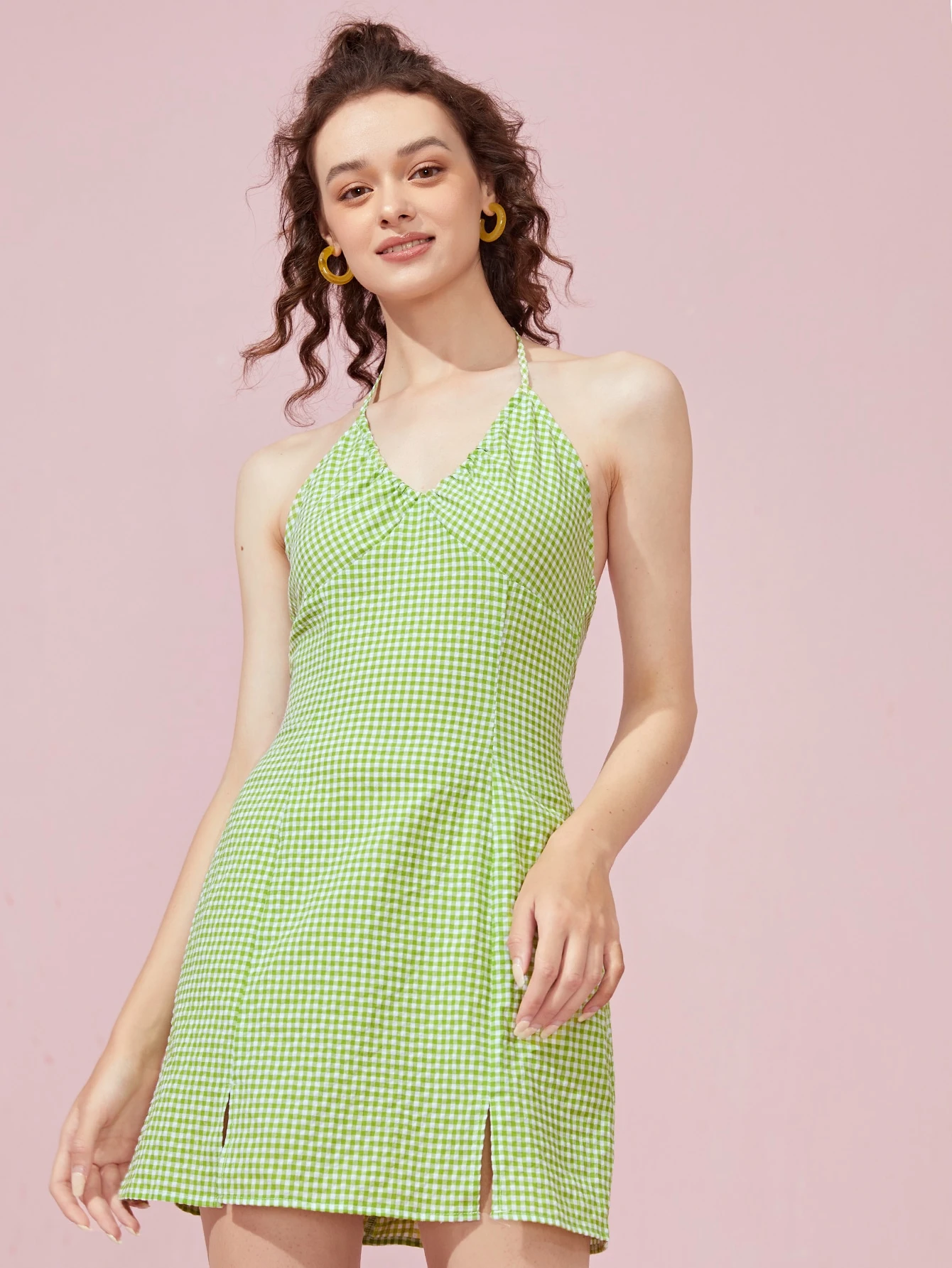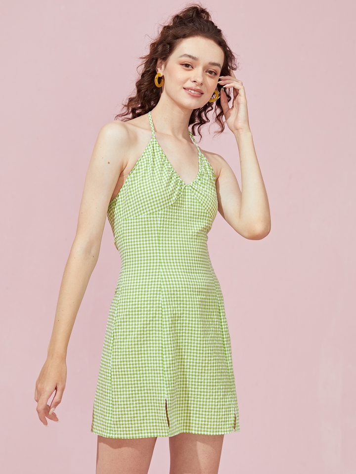 Gingham Halter Split Dress