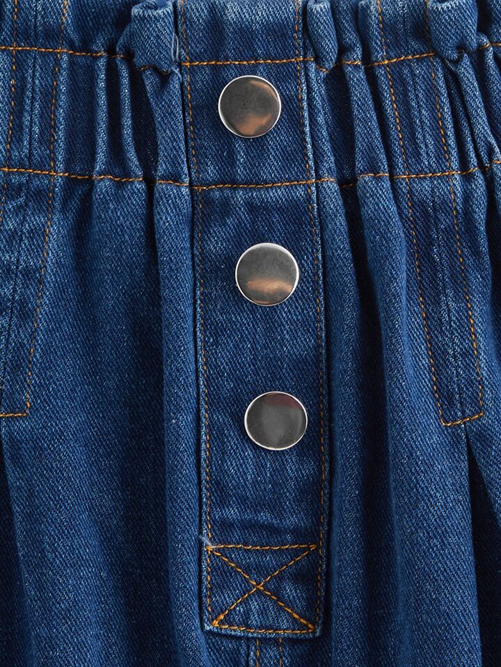 Girls Paperbag Waist Pocket Patched Tapered Jeans