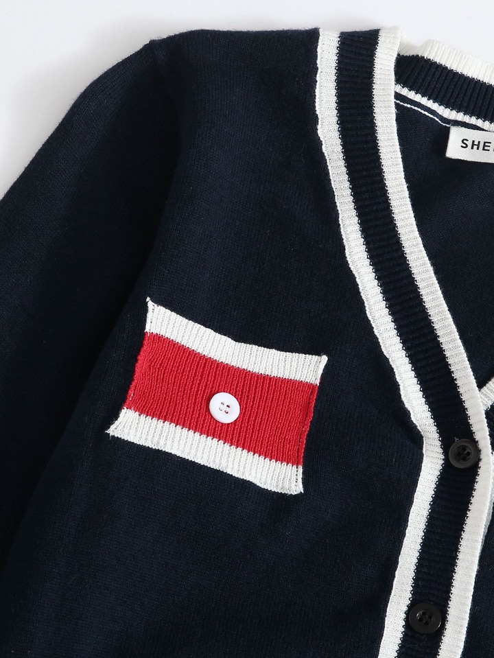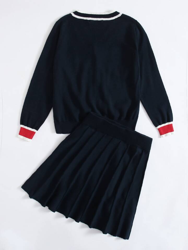 Girls V-neck Striped Cardigan & Pleated Skirt Set