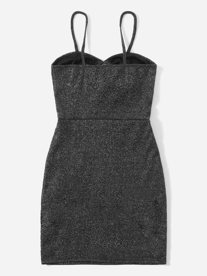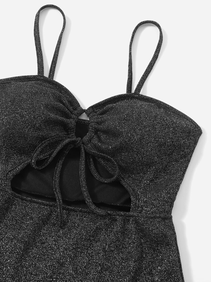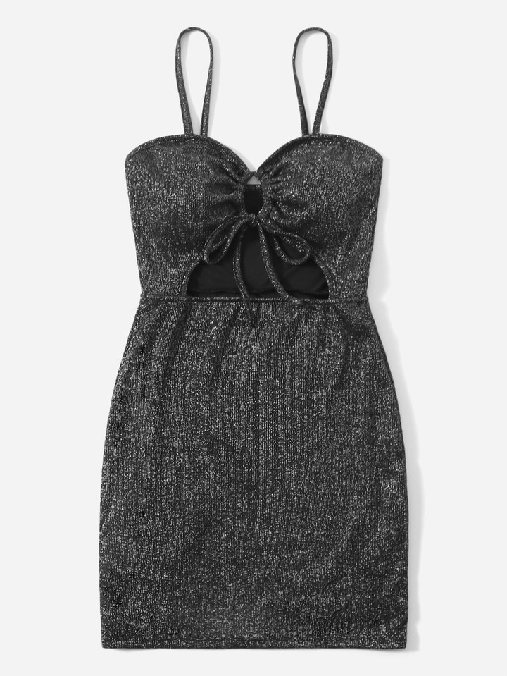 Glitter Drawstring Cut Out Cami Dress
