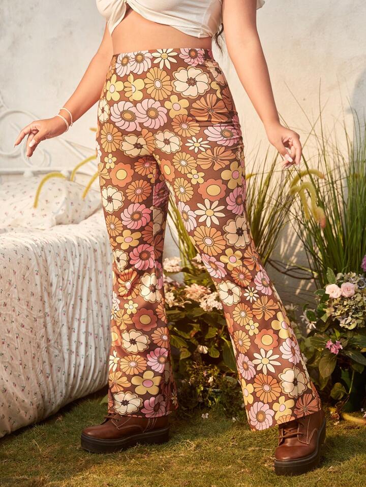 Goldendazeillustration Hippie Plus Floral Print Flare Leg Pants