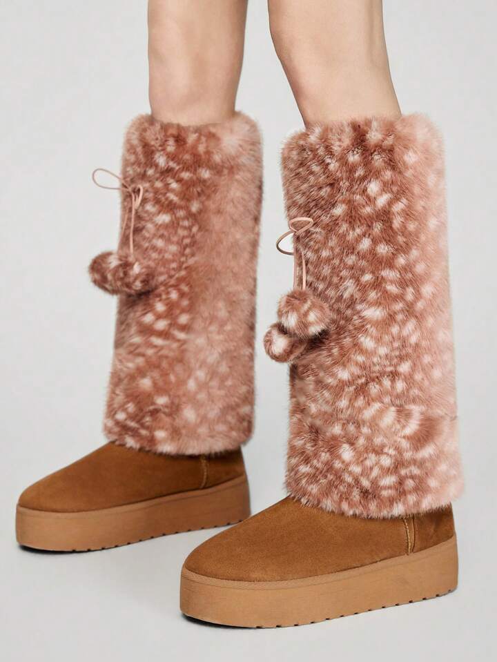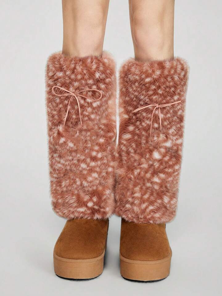 Goth 1 Pair Brown Christmas & Halloween Decor Y2K Sexy & Cute Deer Pattern, Bowknot, Furry Leg Warmers For Women, Warm & Fashionable For Daily, Campus, Shopping, Travel, Autumn/Winter