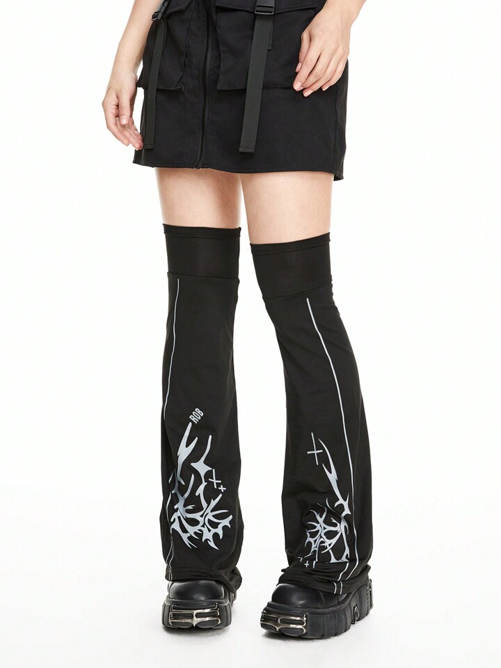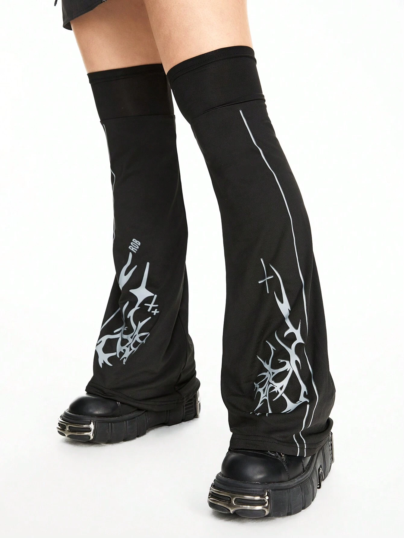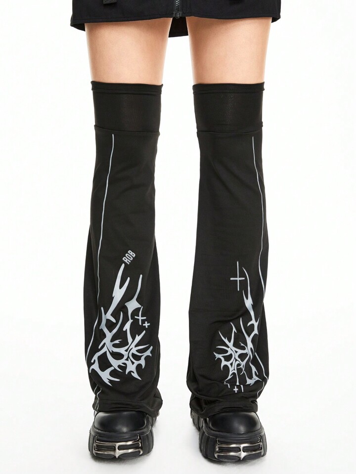 Goth 1 Pair Punk Style Extra Long Over-The-Knee Leg Warmers, Unique Printed Flared Leg Warmers, Suitable For Daily Wear Thigh High Stockings, Fit For Holiday Party Outfits, Niche Design Leg Sleeves