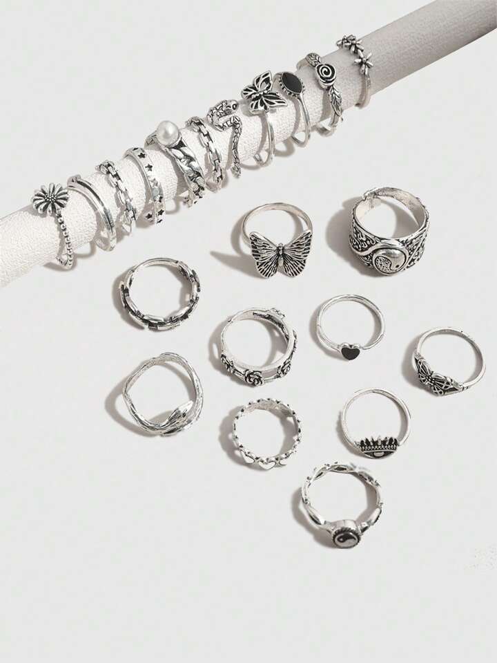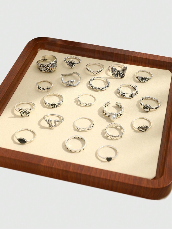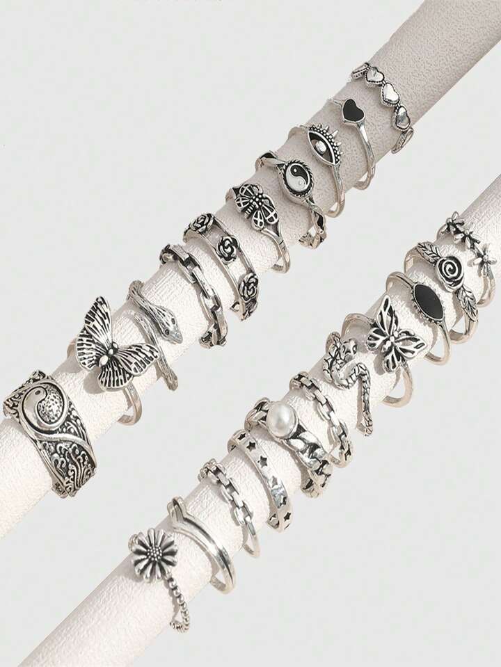 Goth 1 Set Of 21pcs Fashion Retro Butterfly, Heart, Geometric, Flower, Snake, Eye Rings Valentines