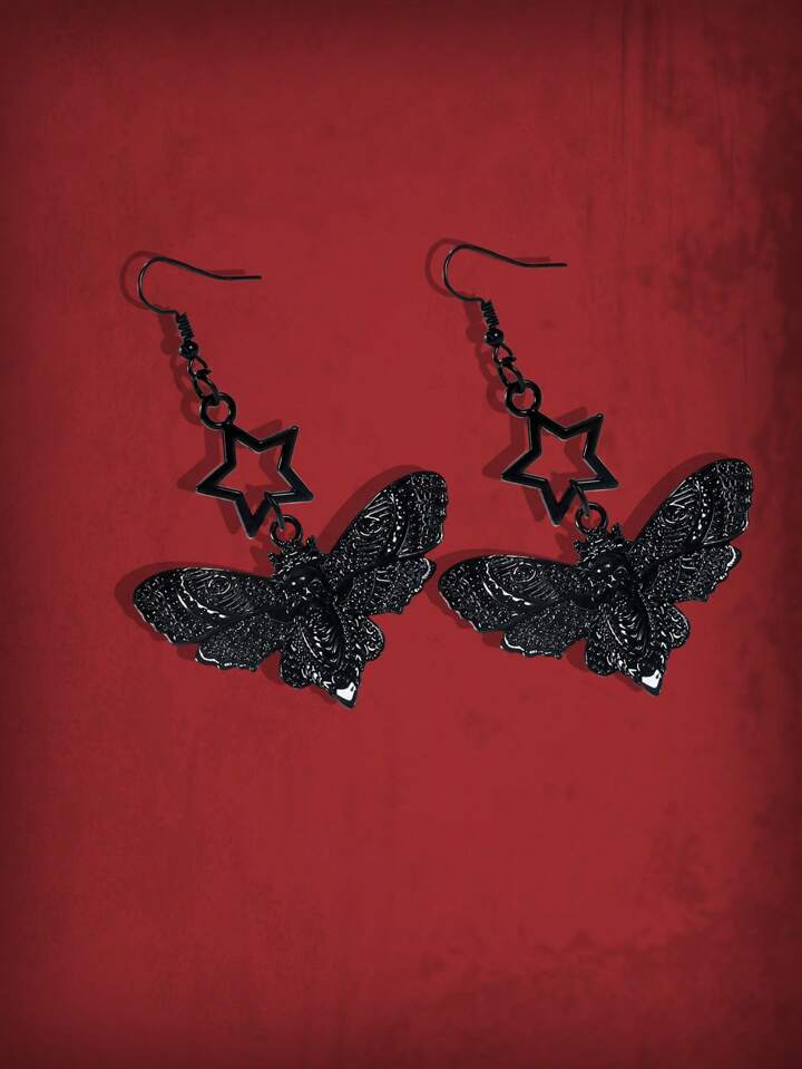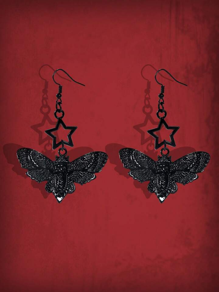 Goth 1pair Funky Copper Alloy Moth Drop Earrings For Women For Daily Decoration