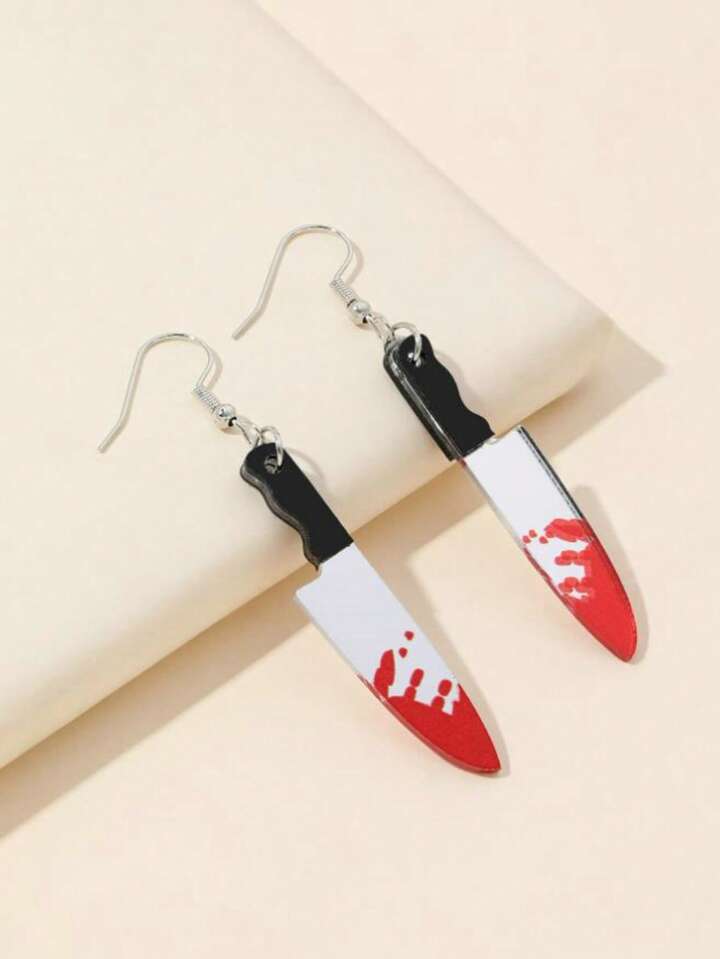 Goth 1pair Funky Zinc Alloy Knife Decor Drop Earrings For Women For Halloween