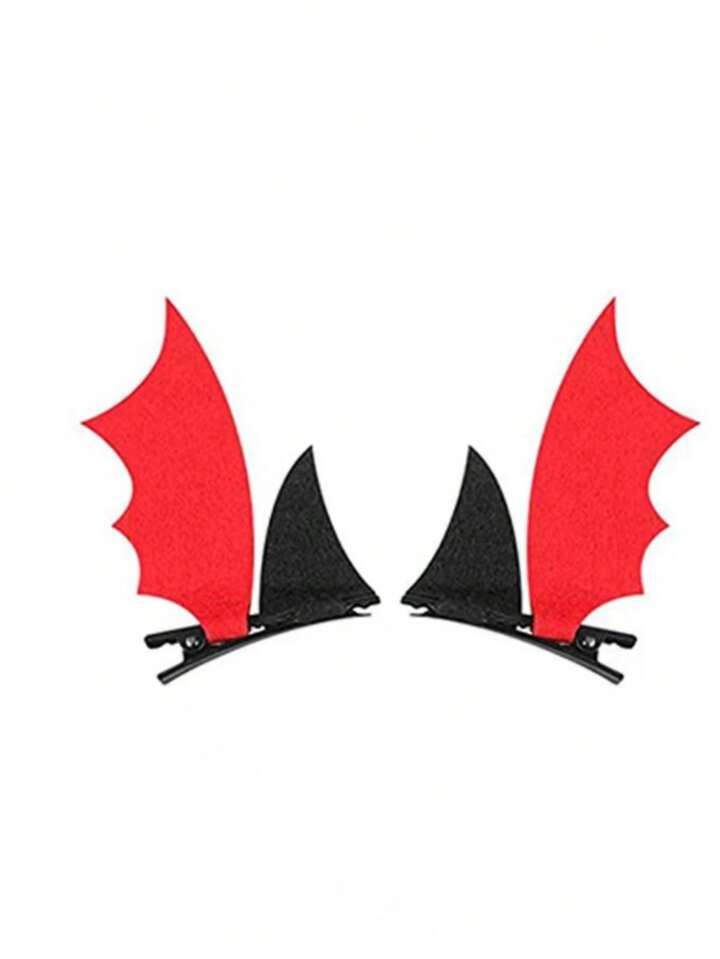 1pair Gothic Bat Wings Devil Horn Hair Clips For Daily Party Decoration