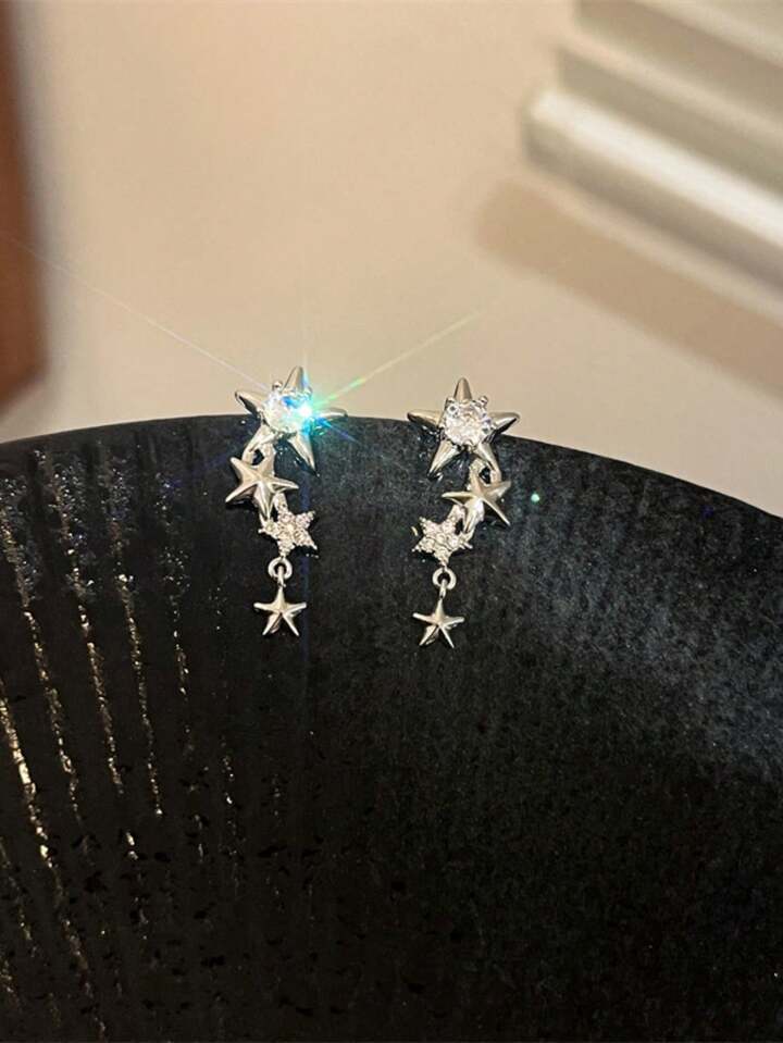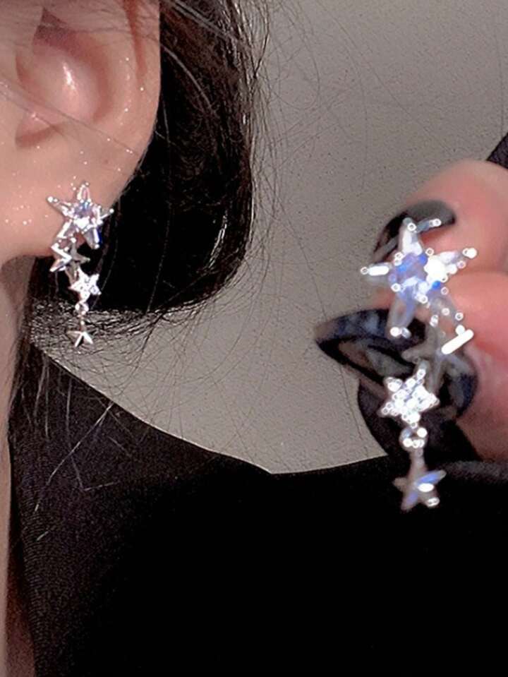 Goth 1pair Star Shaped Rhinestone Decor Stud Earrings