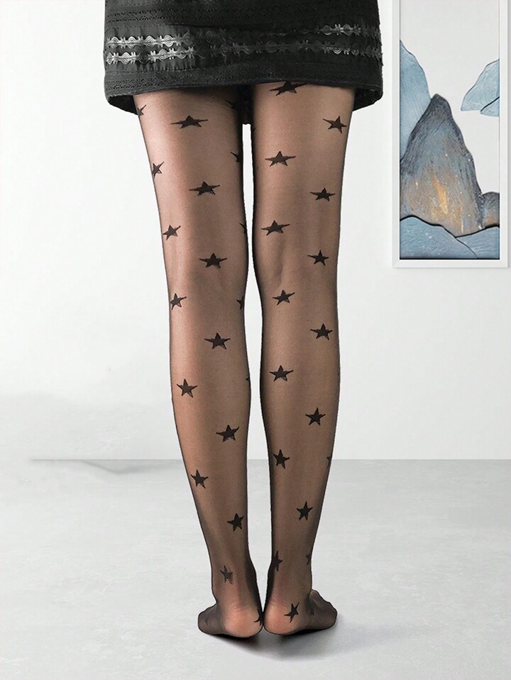Goth 1pair Women's Pantyhose With Pentagram Pattern