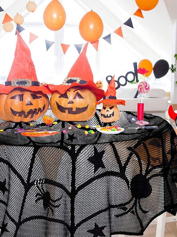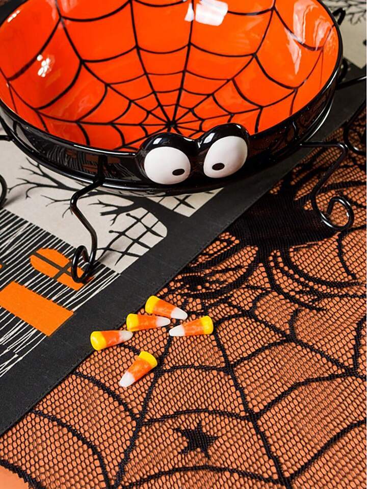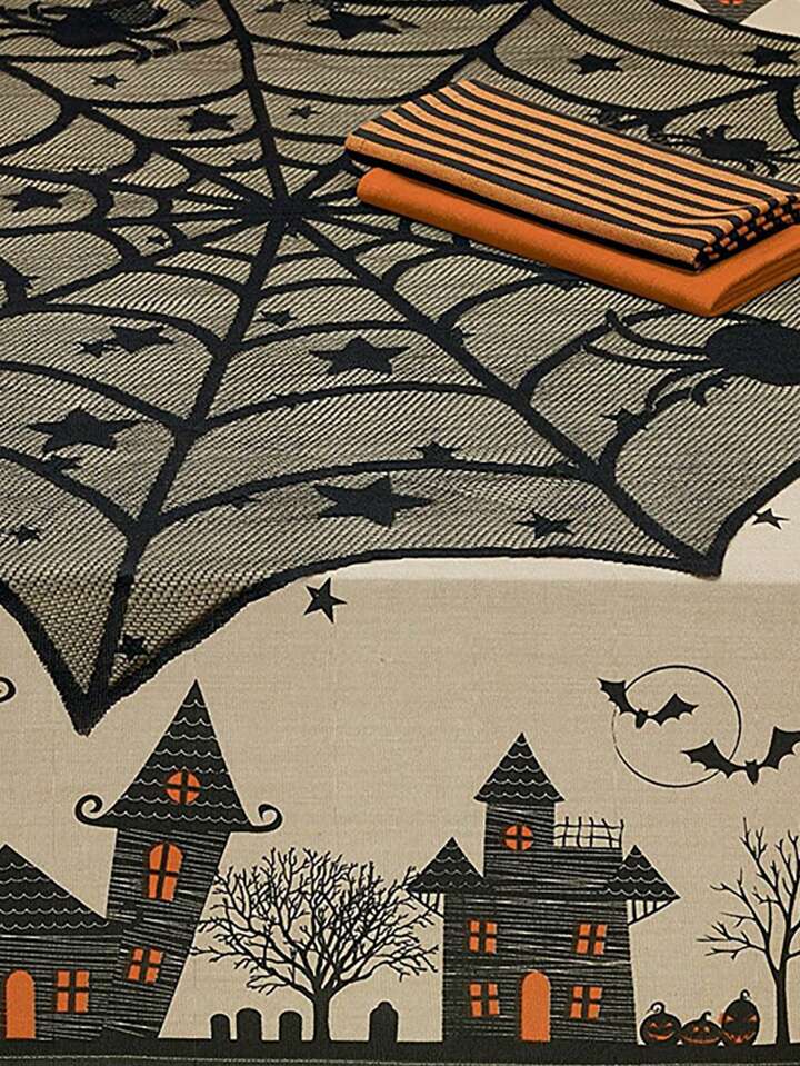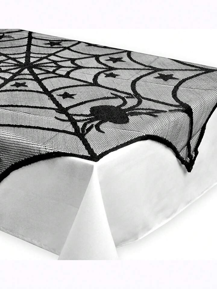 Goth 1pc Asymmetrical Black Lace Halloween Spider Web Tablecloth, Suitable For Holiday, Party, And Home Decor