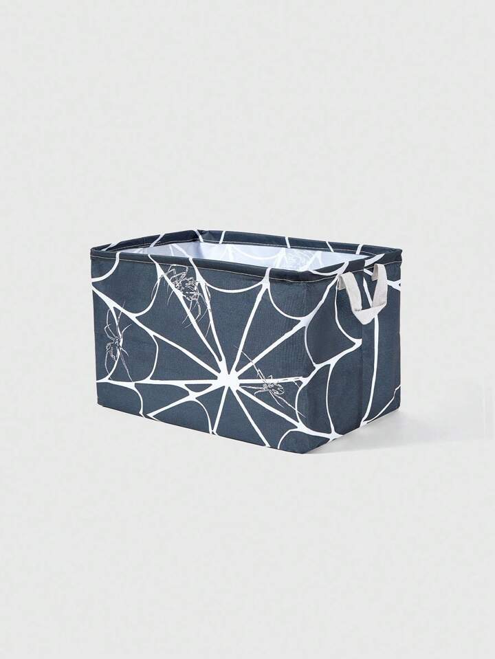Goth 1pc Black Background With Black Spider & White Cobweb Pattern Fabric Storage Basket, Clothes & Toy Organizer Box, Halloween