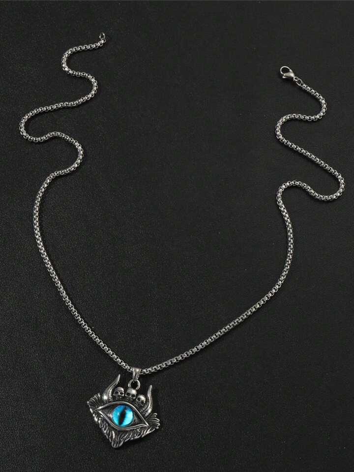 Goth 1pc Blue Eye Shaped Pendant Necklace