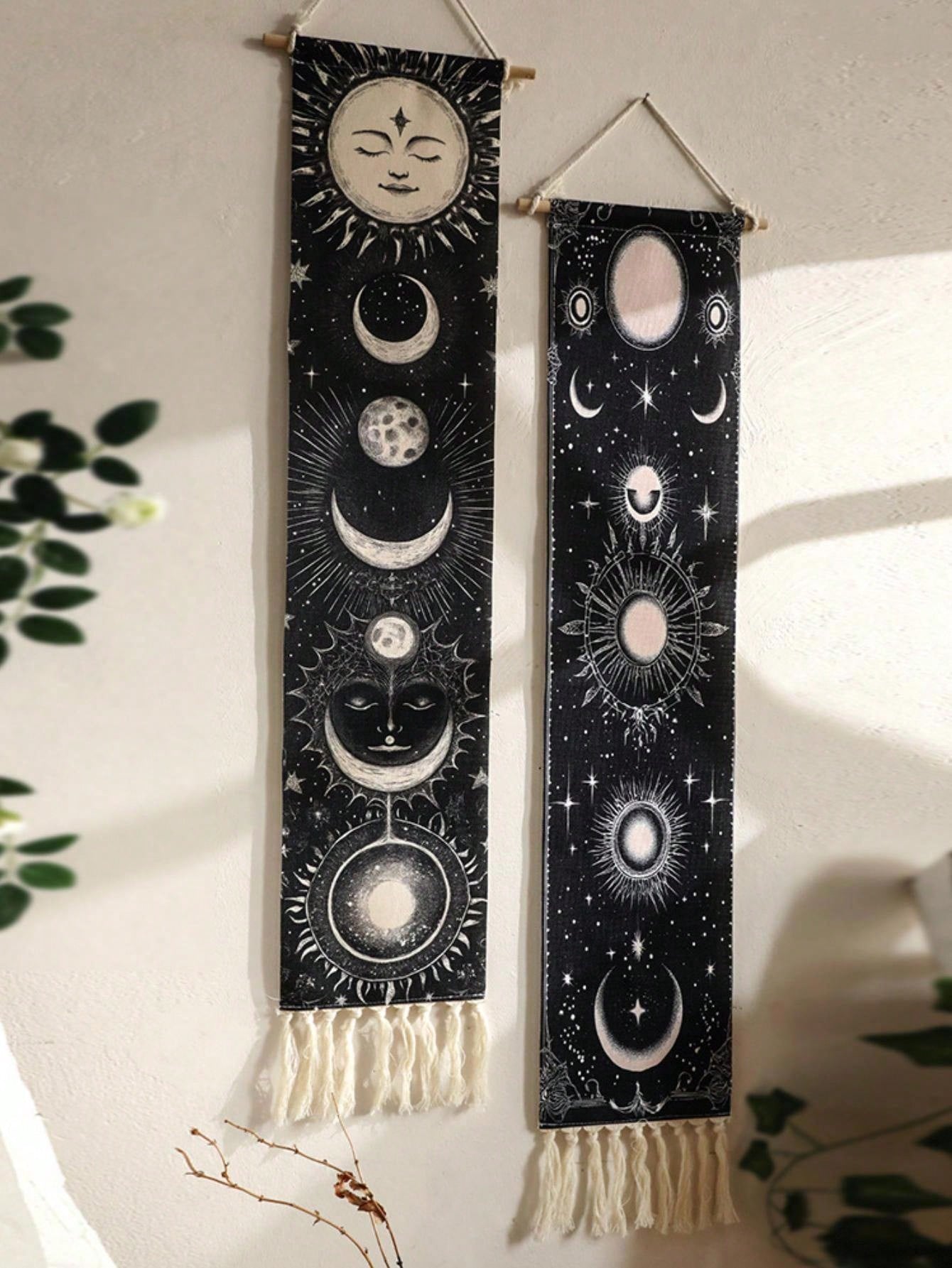 Goth 1pc Decorative Tapestry ,Decorative Hanging Flag With Tassels,Bohemian Sun And Moon Hand-Woven Printed Pattern Fringed Tapestry, Simple Studio Living Room, Background Wall Decoration Holiday Gift Pendant,Home Decor