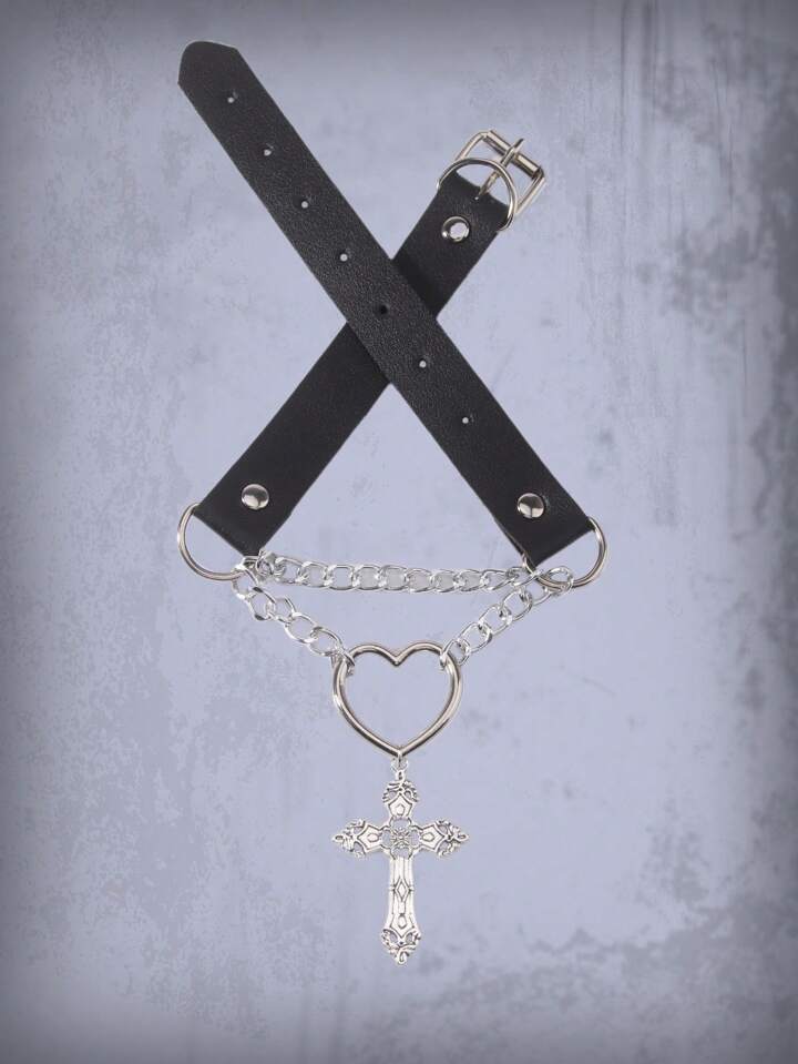 Goth 1pc Fashion Iron Alloy Heart & Cross Decor Necklace For Women For Daily Decoration