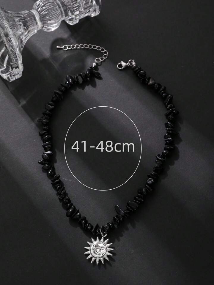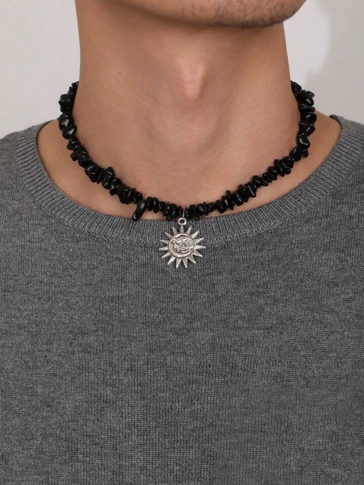 Goth 1pc Fashionable Vintage Sunstone Beaded Necklace Suitable For Men Autumn & Winter Wear And Decoration