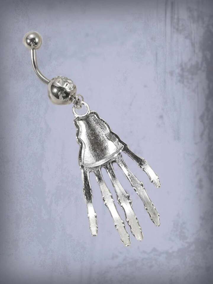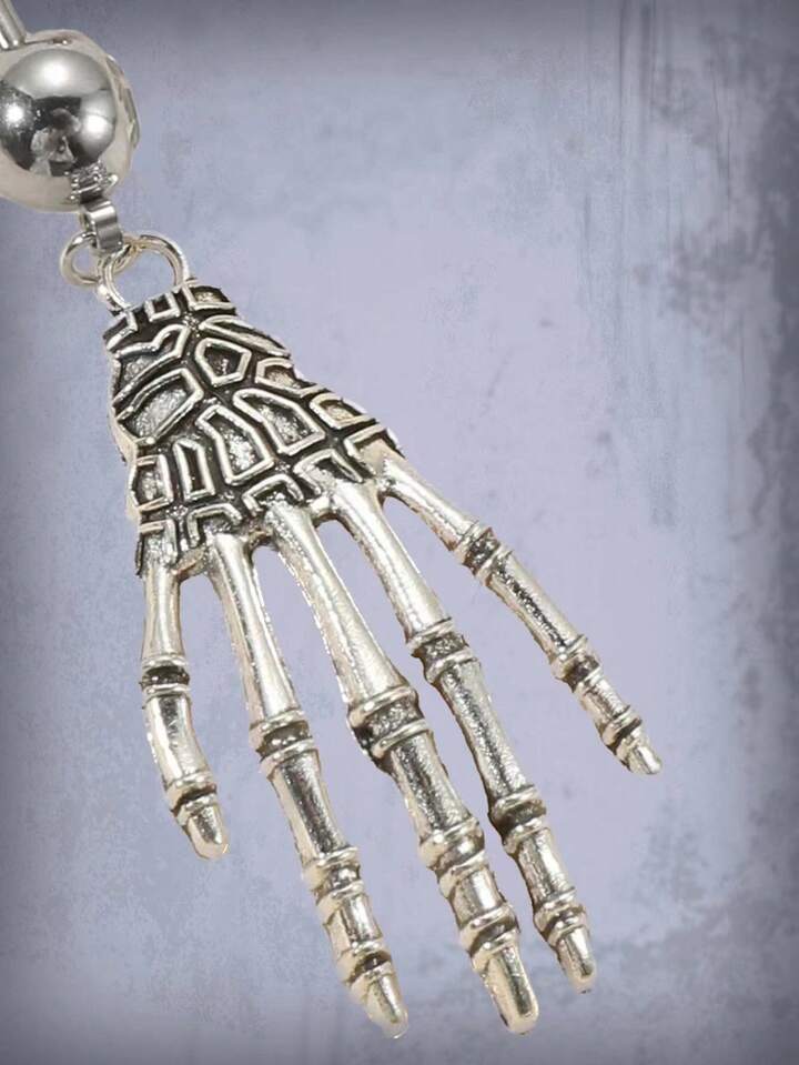 Goth 1pc Funky Stainless Steel Skeleton Hand Decor Navel Belly Ring For Women For Body Decoration