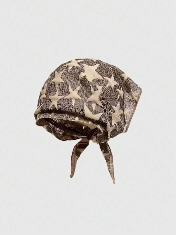 Goth 1pc Khaki Millennium Babe Retro Apocalyptic Pentagram Pattern Bandana Headscarf, Fashionable Minimalist Wild Style Versatile Accessory For Women, Suitable For Daily Wear, Dates, Parties, Travel, Etc.
