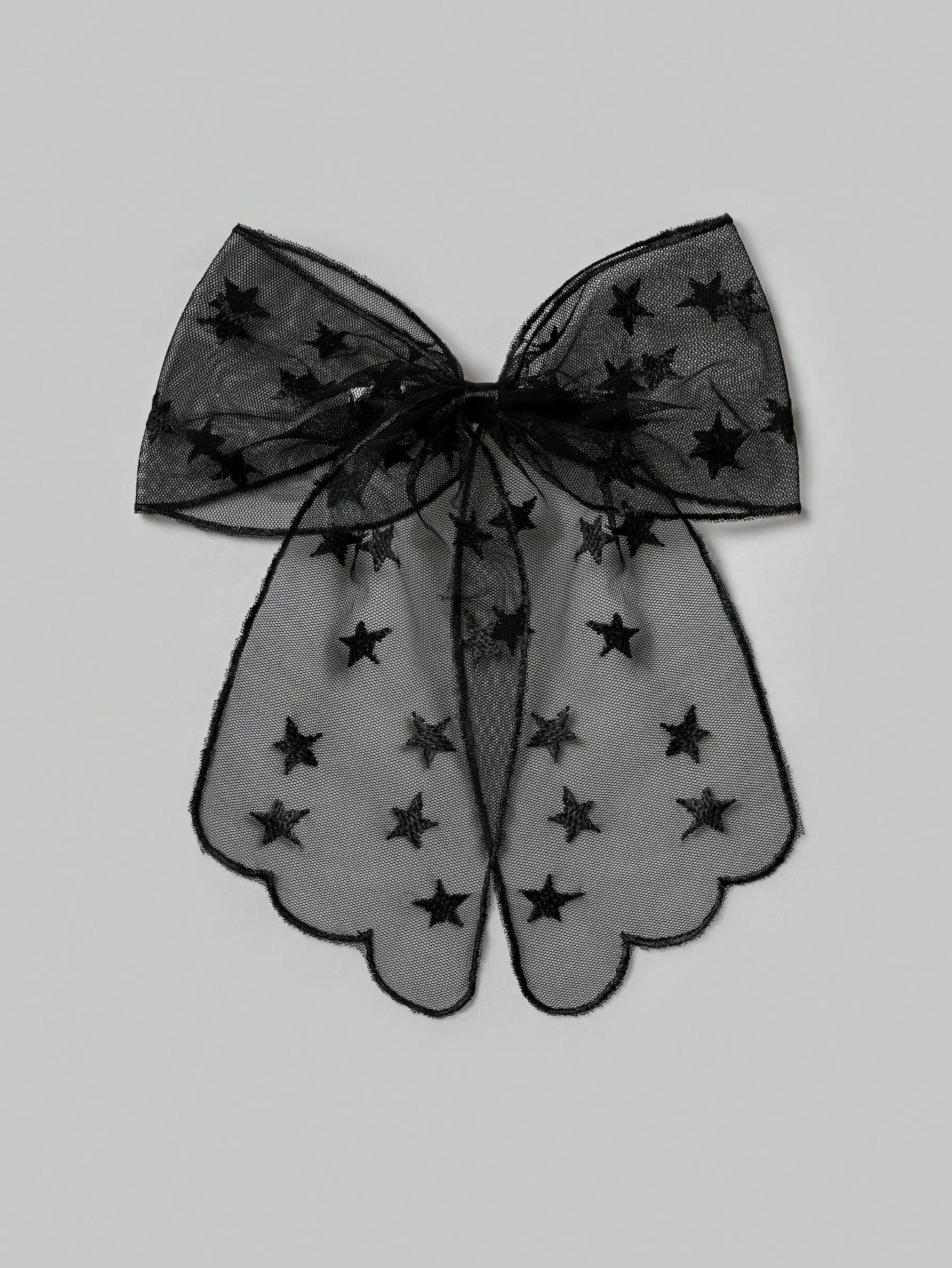 Goth 1pc Lace Embroidered Dark Star & Cloud Pattern Hair Clip, Decorative Accessories For Women Daily Outfit