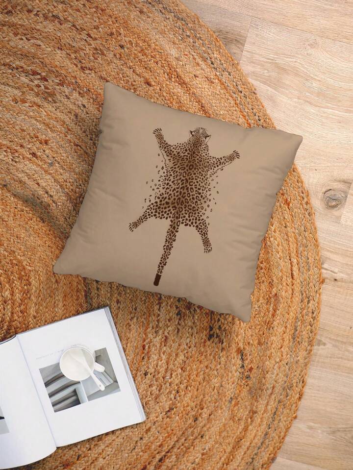 Goth 1pc Leopard Print Animal Pattern Cushion Cover, Plush Fabric Printed Square Pillow Case, Suitable For Living Room, Bedroom Home Decor, Sofa/Car Lumbar Pillow, All Season Use