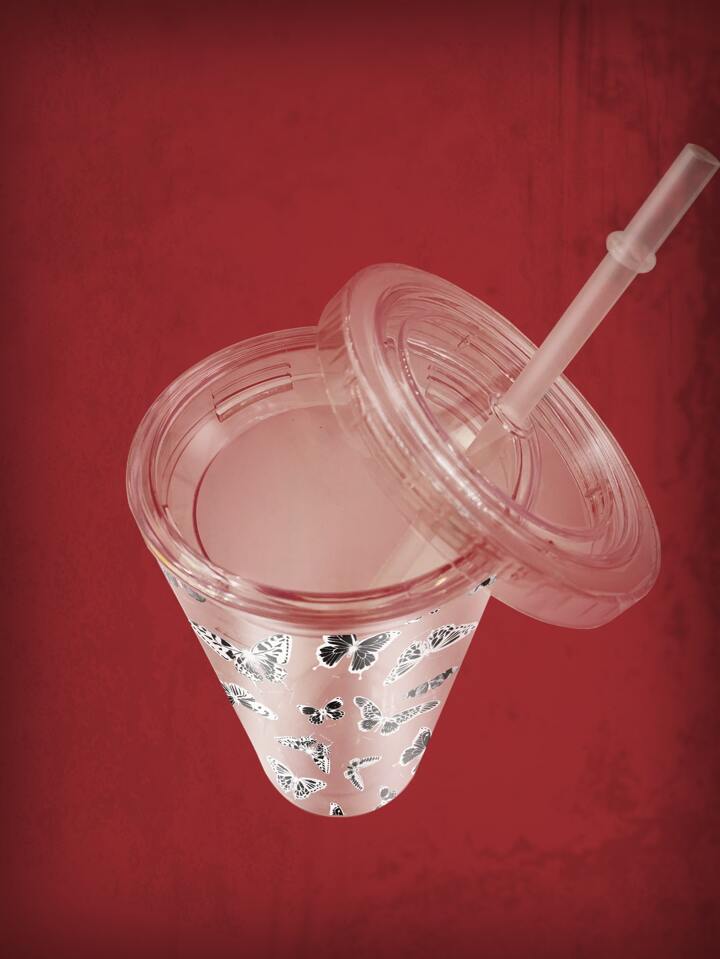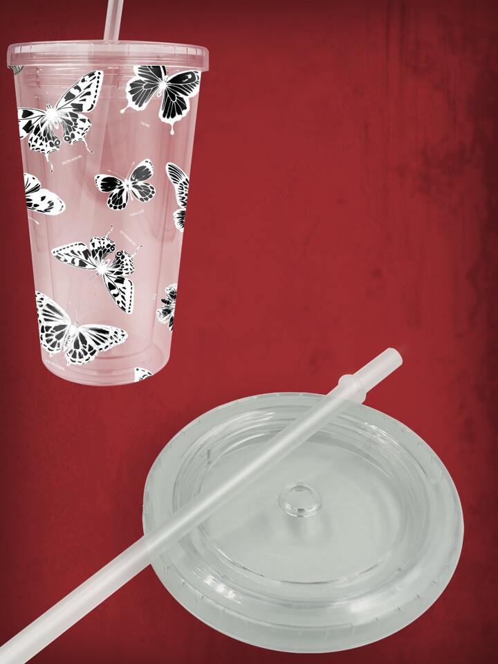Goth 1pc Letter & Butterfly Print Tumbler, Modern PS Insect Print Bottle With Lid For School, Office