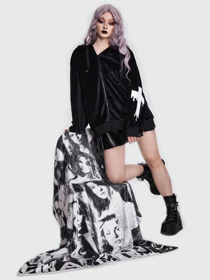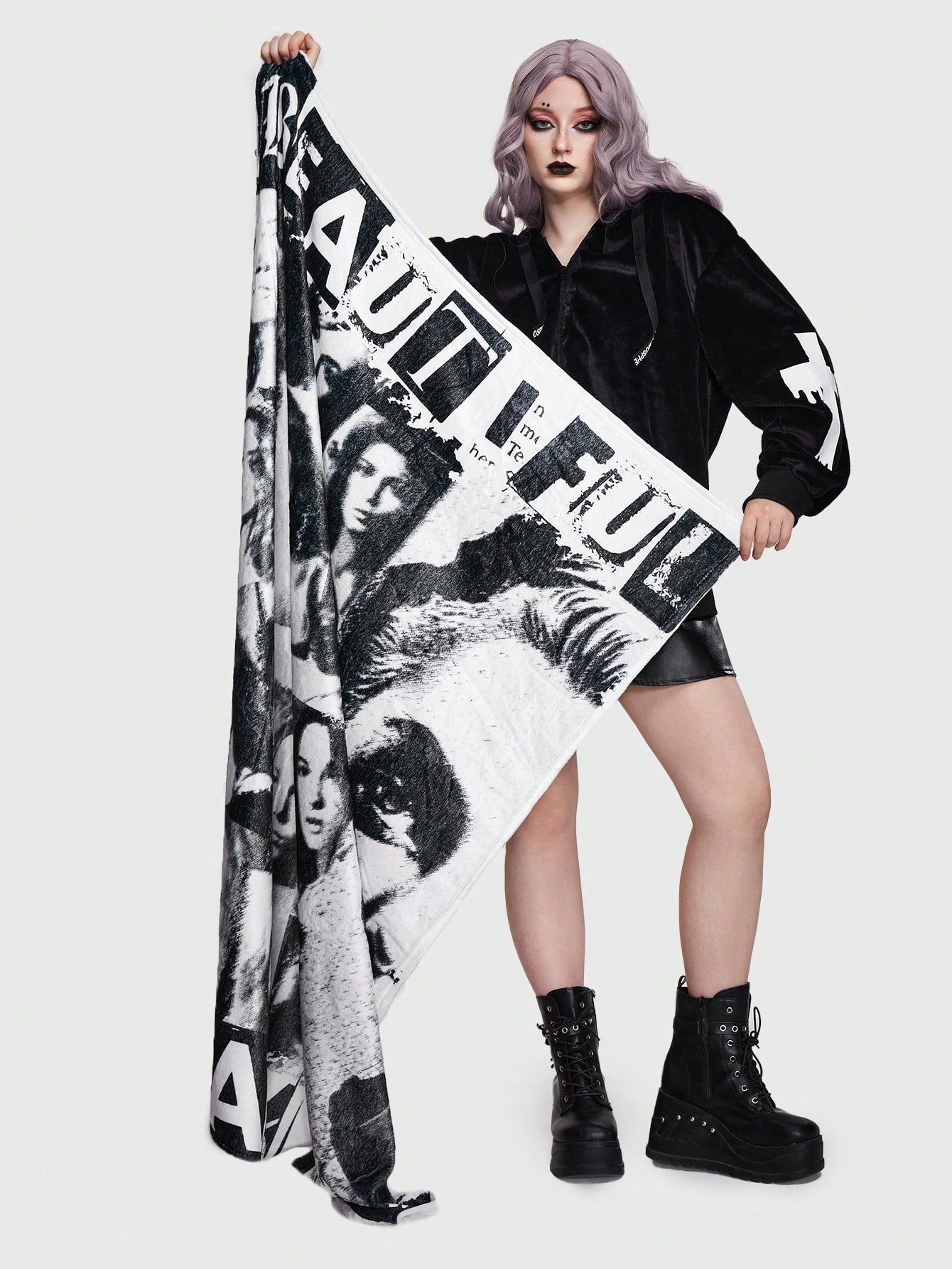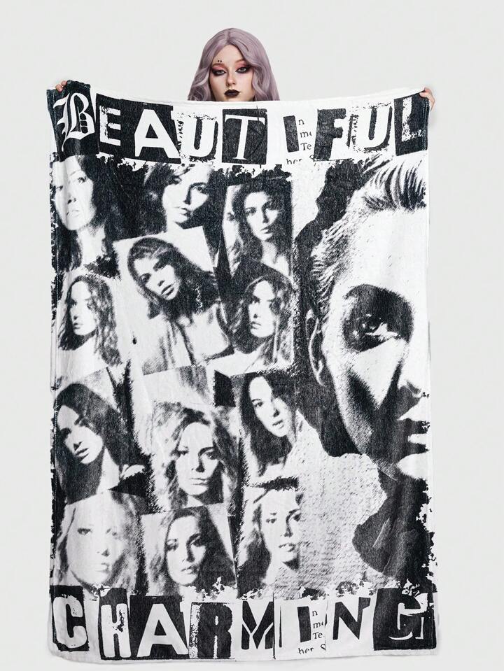 Goth 1pc Letter Figure Pattern Throw Blanket,Casual Washable Throw Blanket For Couch And Bed
